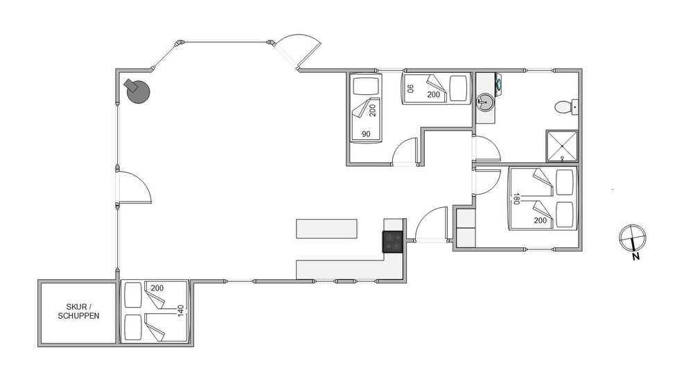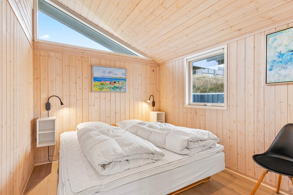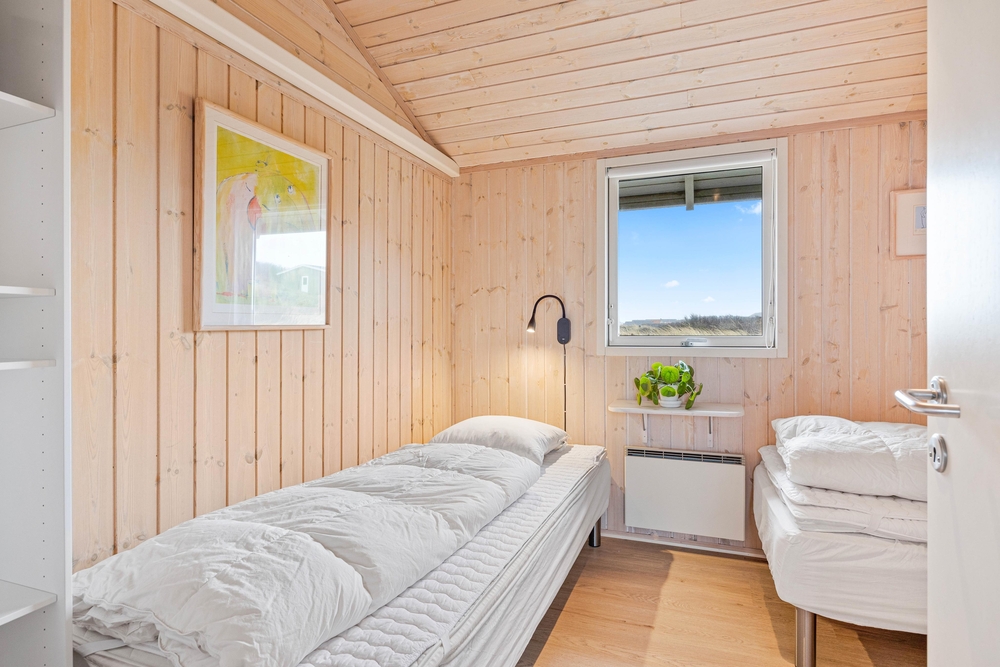 Sommerhuset har 3 skønne soverum ? det ene med en dobbeltseng og de andre med 2 enkelt senge.