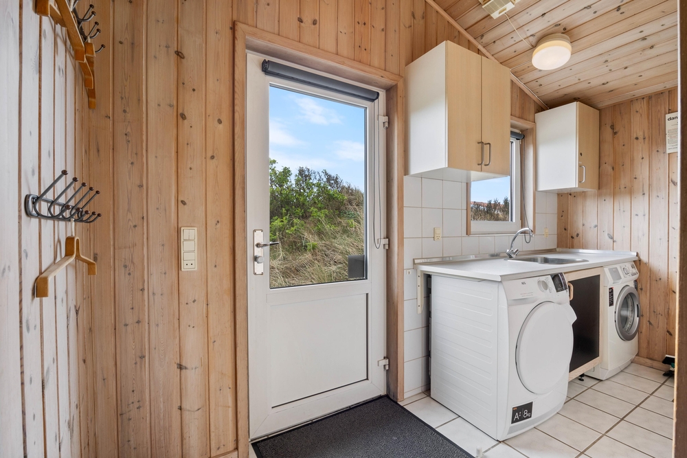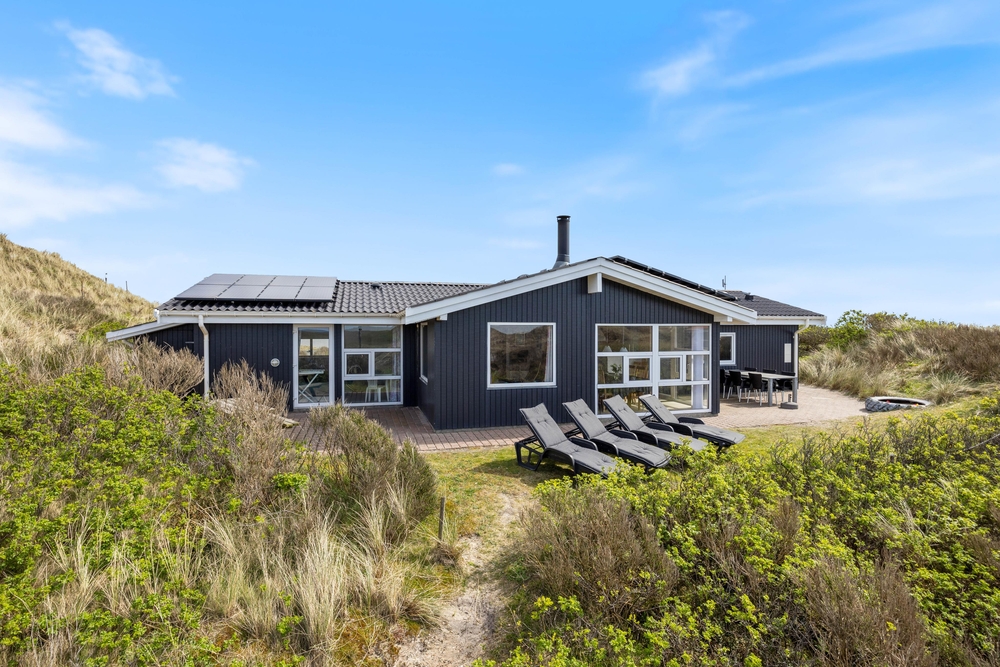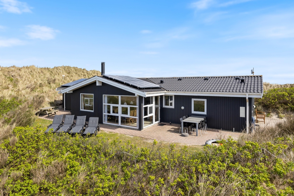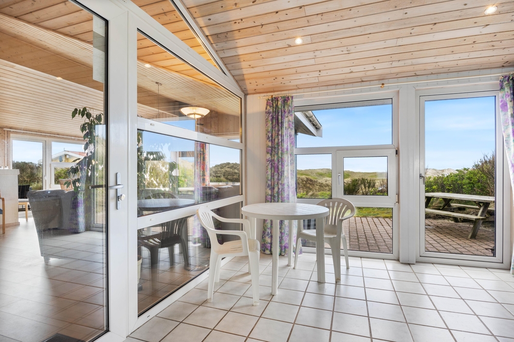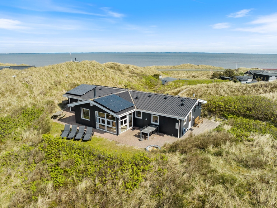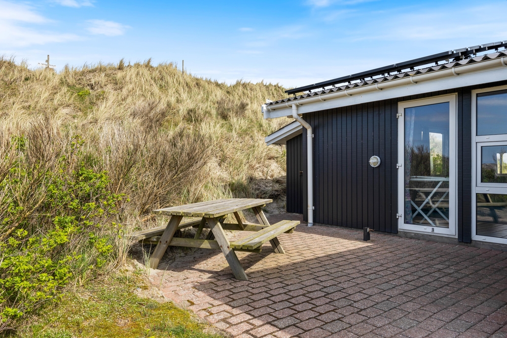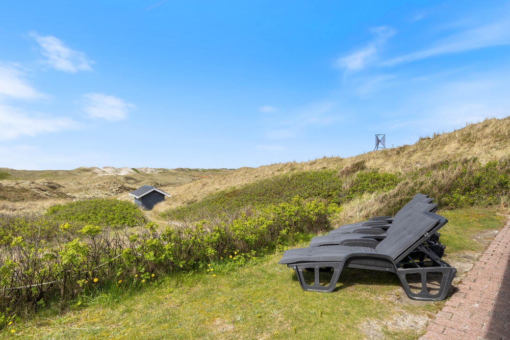 Rundt om feriehuset finder I en dejlig terrasse med en fantastisk udsigt. Her er der plads til, at I kan sætte jer ned og læse en god bog med udsigt ud over Ringkøbing Fjord. På den anden side af feriehuset er der også en beroligende og skøn udsigt udover klitlandskabet, som I kan nyde imens I sidder og spiser aftensmad, som I kan grille på feriehuset grill.