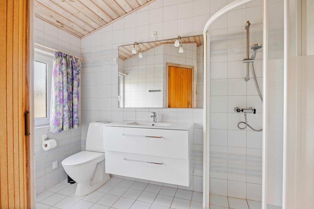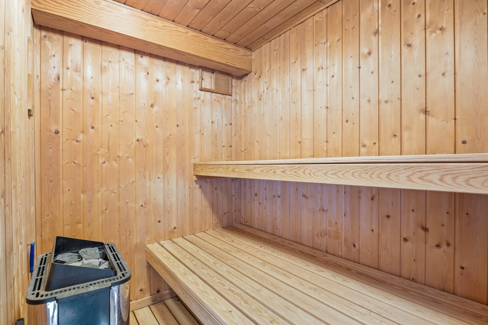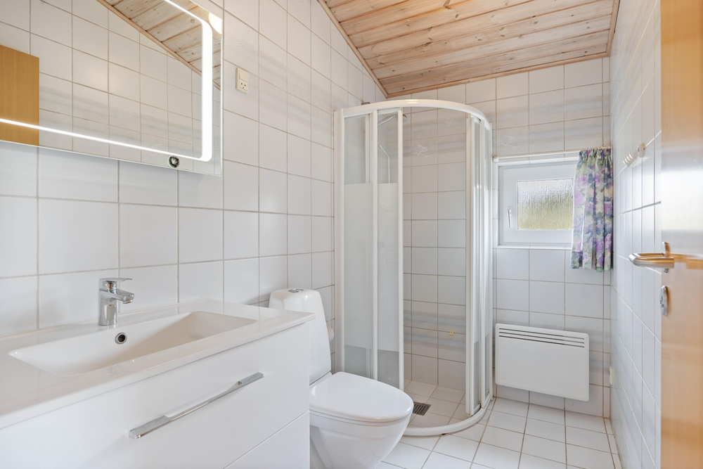 Efter en lang gåtur kan I sætte jer ind i saunaen for at få varmen igen. Saunaen finder I på det ene badeværelse. Der er i alt 2 badeværelse i feriehuset, som begge har gulvvarme. Derudover finder I 8 sovepladser, som fordeler sig på i alt 4 soverum med 8 enkeltsenge.