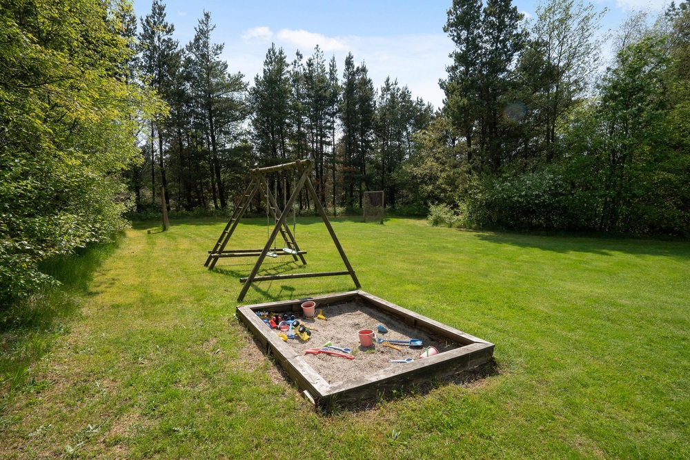 Der er masser af plads til børnenes leg. En stor græsplæne med fodboldmål til boldspil, en sandkasse, gynger og et klatrestativ giver variation til masser af sjov og leg.