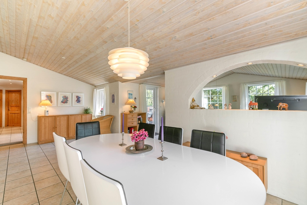 Både udvendigt og indvendigt er der virkelig tænkt på det hele. På den store naturgrund bor I blandt det flotte lyng og hedekrat, og på de 3 store terrasser har I altid god læ til at nyde vejret og den smukke udsigt.
