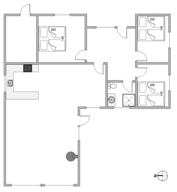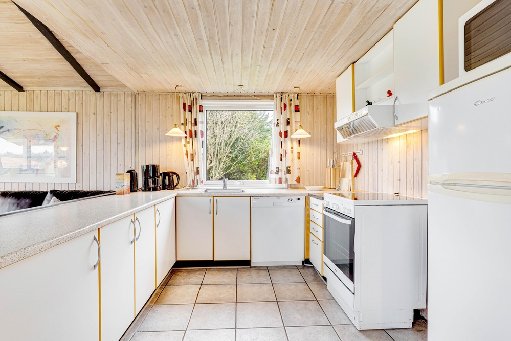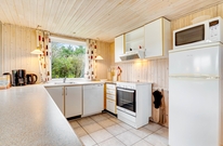 I det velindrettede sommerhus finder I et godt køkken, som står i åben forbindelse med spise- og opholdsstuen. I stuen er der en brændeovn, som spreder en ekstra hyggelig feriestemning ? og dejlig varme på en kølig efterårsdag. I kan med fordel også bruge den energibesparende varmepumpe til at holde en behagelig temperatur i rummet.