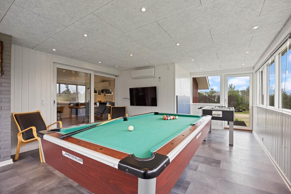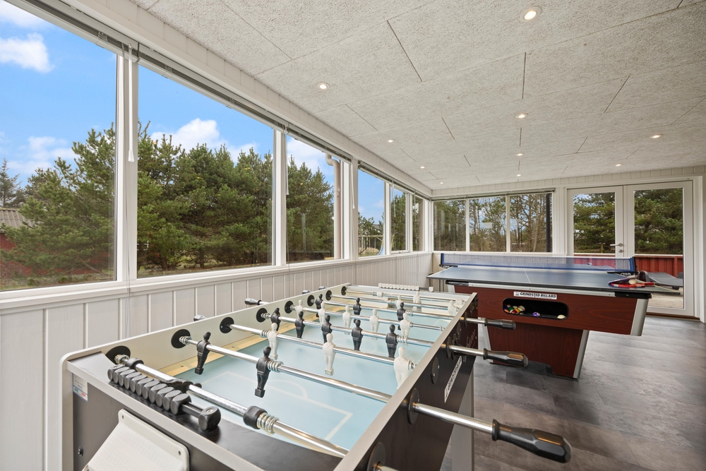 I det store aktivitetsrum kan hele familien rigtig samles til en dyst med diverse spil. ? Her finder I både billard, bordtennis, bordfodbold og elektronisk dart. Alt sammen perfekt til turneringer og familiehygge på højt plan ? måske efter en lang dag i naturen.