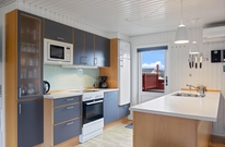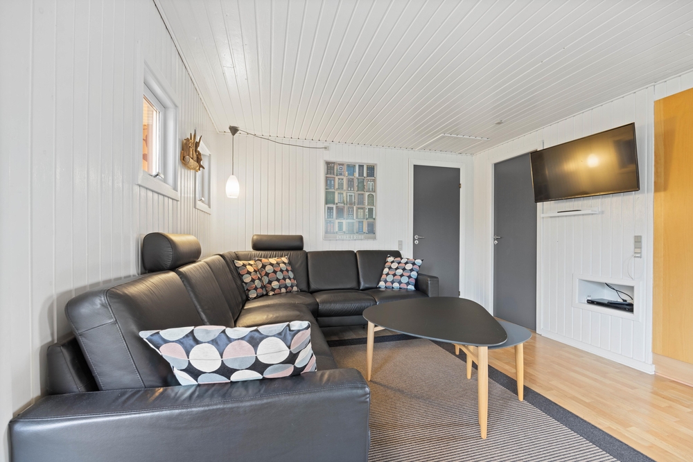 Dette skønne træferiehus er løbende renoveret og godt indrettet. Køkkenafdelingen er lys og åben, og bl.a. med mikroovn og opvaskemaskine. Opholdsrummet er i direkte forbindelse med køkkenafdeling og indrettet med spiseplads og sofahjørne, hvorfra man på de lidt køligere dage kan nyde den knitrende ild i brændeovnen.