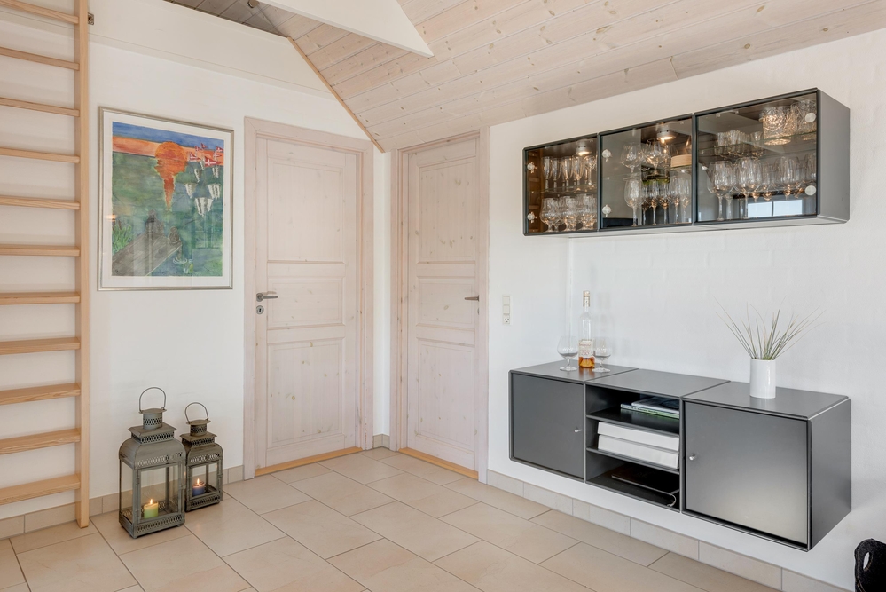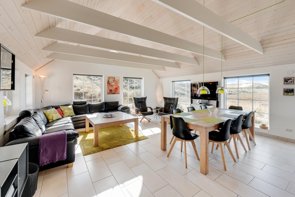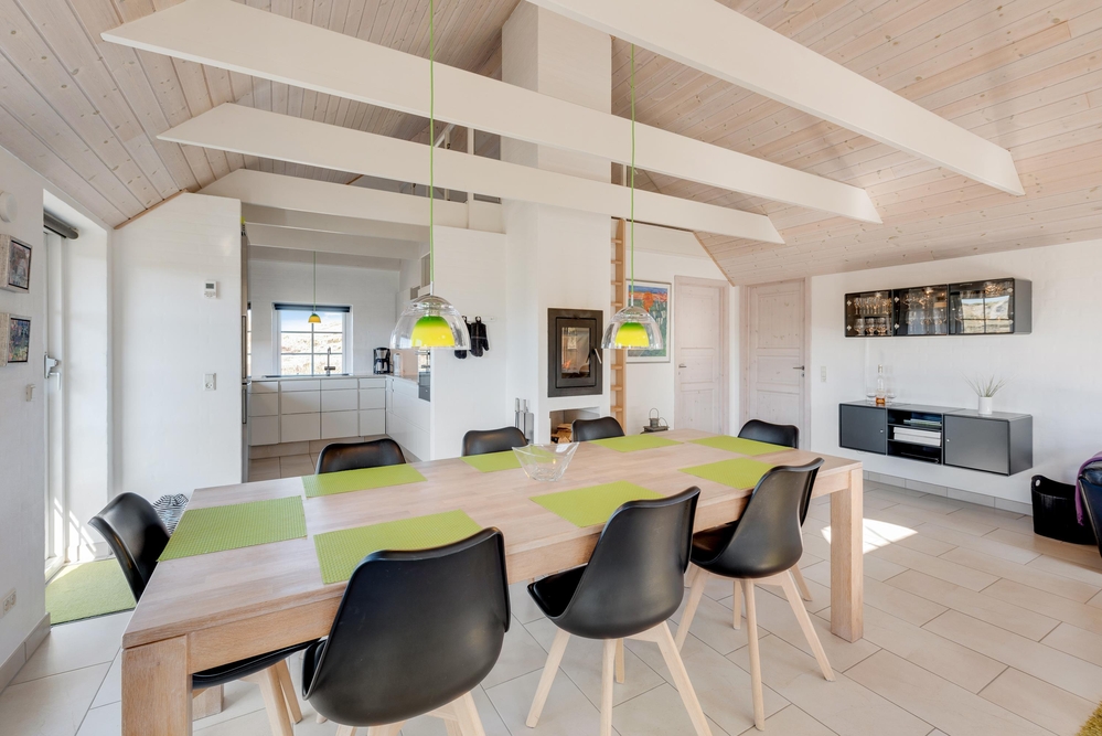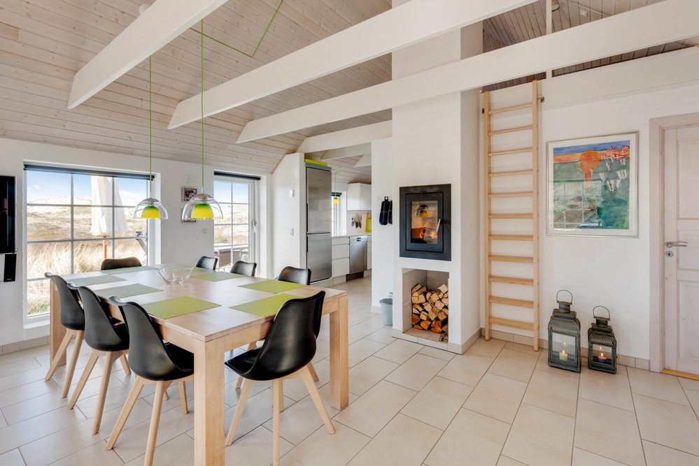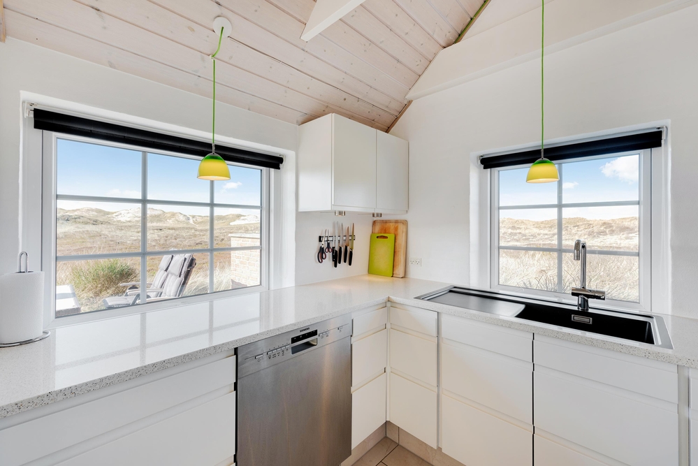 Den yderst smagfulde indretning byder på alt, hvad I skal bruge til jeres ferie på vestkysten. Det lyse og moderne køkken er indrettet med kvalitets hårde hvidevarer og følger stilen fra resten af sommerhuset, så det fremstår velintegreret. Her kan den professionelle feriekok slå sig løs og nyde udsigten på klitlandskabet imens.
