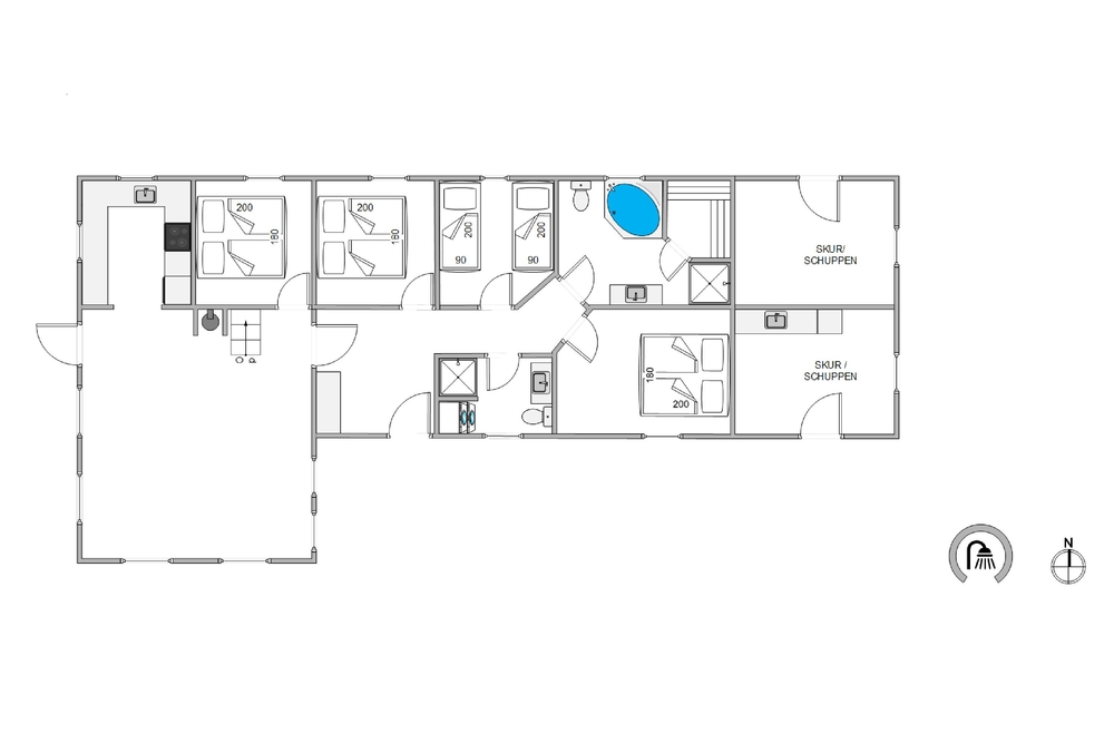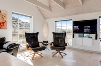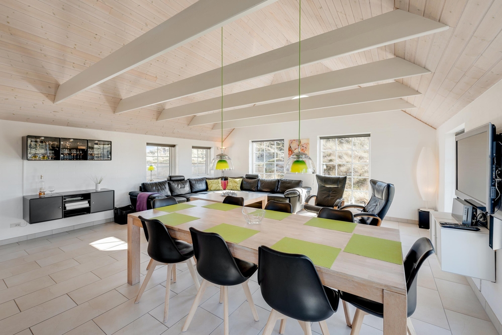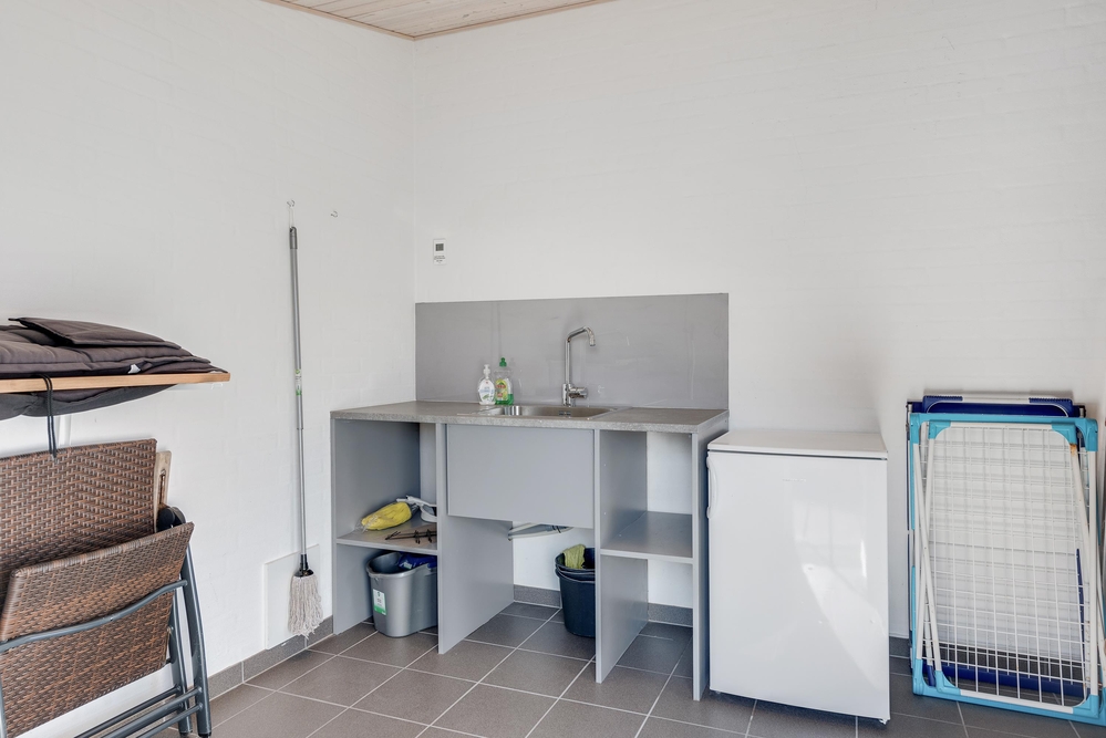 Opholdsrummet har en lys og åben inddeling. Her er der plads til, at hele familien kan samles, både ved spisebordet med brætspil og i sofaen med en god film. Brændeovnens centrale placering i opholdsrummet gør, at I kan nyde varmen og flammerne lige meget, hvor i rummet I opholder jer. I fereihuset er der alt i alt to stk kølefryse-skabe á 100 L ? det ene befinder sig i køkkenet det andet i depotrummet.