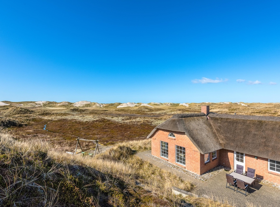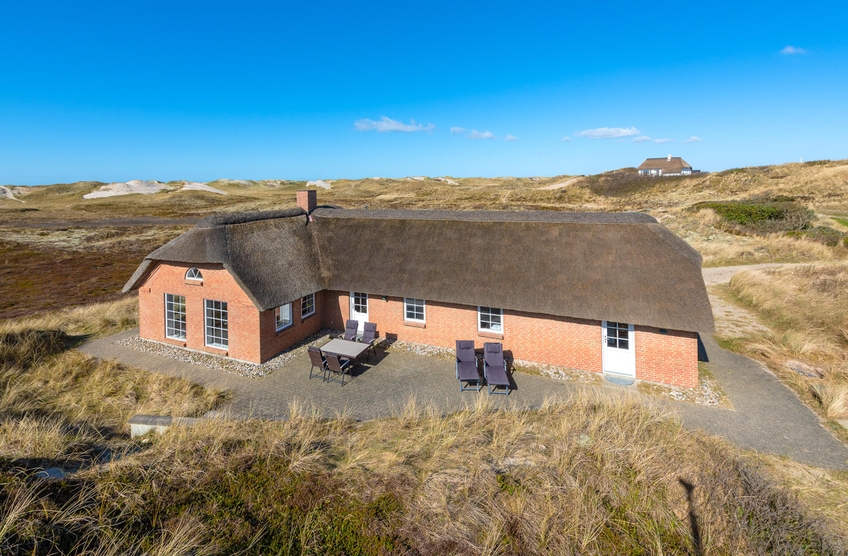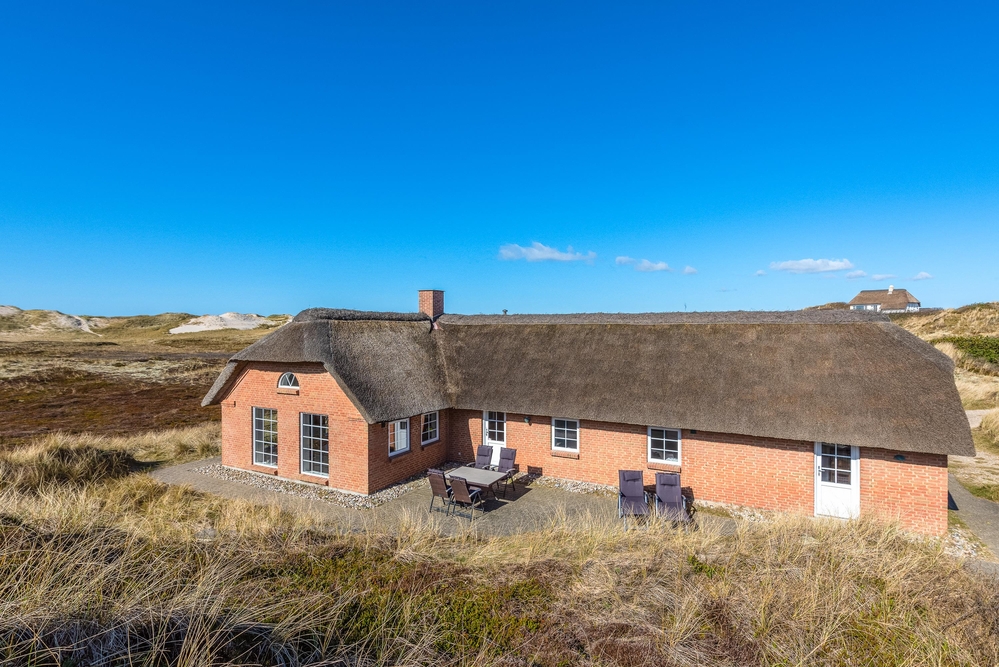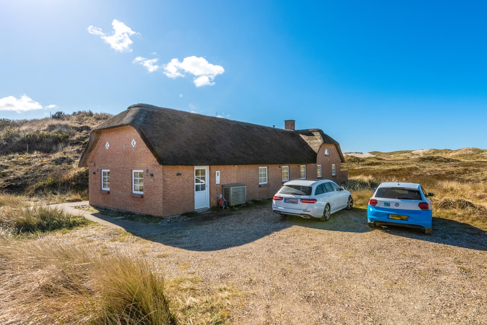 På Klitdalen 45 finder I dette stråtækte drømmehus til otte personer. Midt i klitlandskabet og på en attraktiv naturgrund kan I holde jeres velfortjente ferie med havets bølger i baggrunden. Fra sommerhuset er der kun 200 meter til stranden, og på det store wellnessbadeværelse med sauna og spabad kan I skrue ekstra op for velværen på ferien. Til dette feriehus er der desuden installeret en lademulighed til elbil, så I efter en god køretur i det vestjyske har mulighed for at oplade jeres elbil ? Dog skal I selv huske at medbringe kabel dertil.