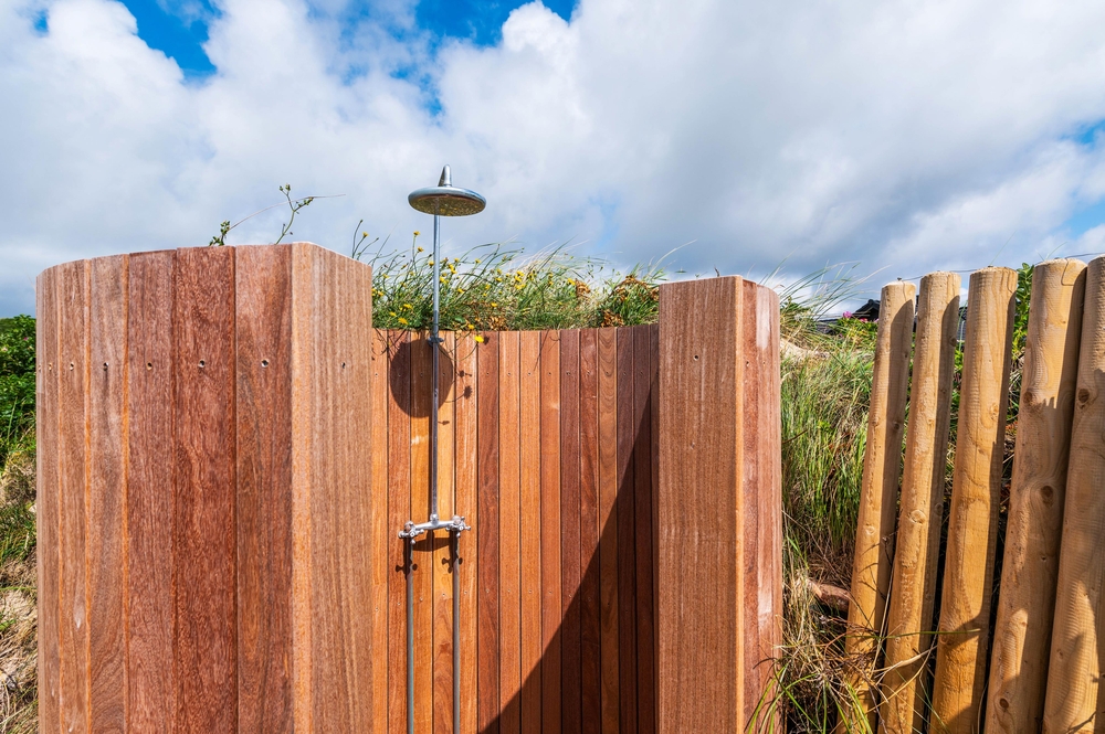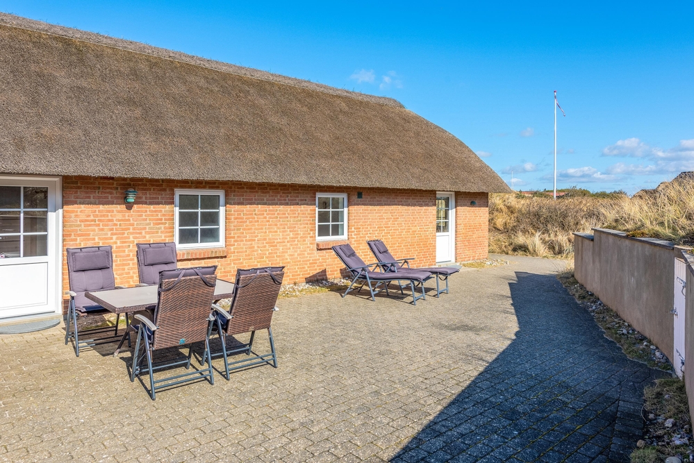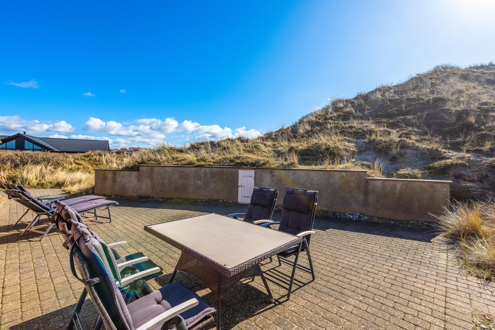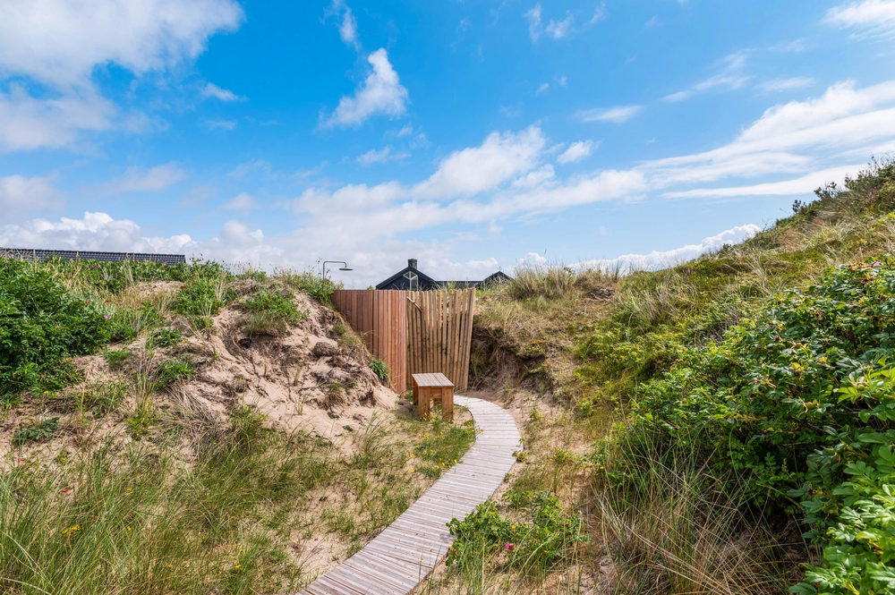 Trænger du til at strække benene efter et par timer i solen? Blot følg stien fra huset og ind i klitterne. Efter få minutter står du på den lange sandstrand og kan dyppe tæerne i Vesterhavet. Du kan også få et forfriskende skyl under udendørsbruseren på terrassen. Udebruseren kan benyttes fra april til november.