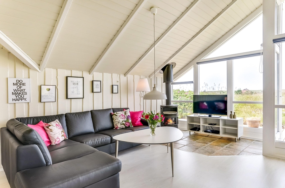 Her er der et charmerende og velholdt feriehus i Houvig ? perfekt til den mindre familie med to børn og en hund. Der er et stort vinduesparti mod vest, som sammen med den gode udsigt skaber et skønt lys. Huset er blevet gennemgribende renoveret i 2015. Den flotte brændeovn skaber både varme og hygge ? ideelt efter en lang travetur langs Vesterhavet. Feriehuset råder over 76 veludnyttede kvadratmeter, og kan huse op til fem gæster. Fire af sovepladserne findes inde i huset, mens den sidste soveplads findes i et lille men lækkert anneks.