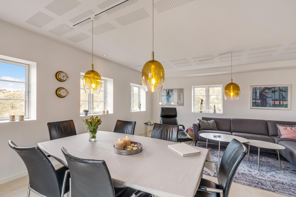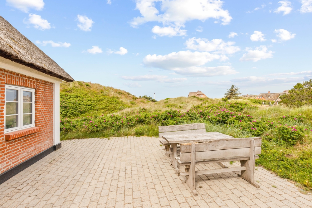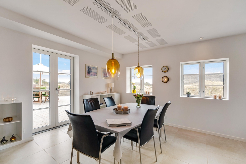 Efter en lang gåtur på stranden, der ligger blot 200 meter fra huset, kan I slappe af i den nyrenoverede sauna med glasdør. Nyd den friske havbrise på den åbne terrasse på toppen af klitten, som du nemt kan tilgå via de nye trapper eller på den store terrasse ved huset.