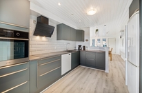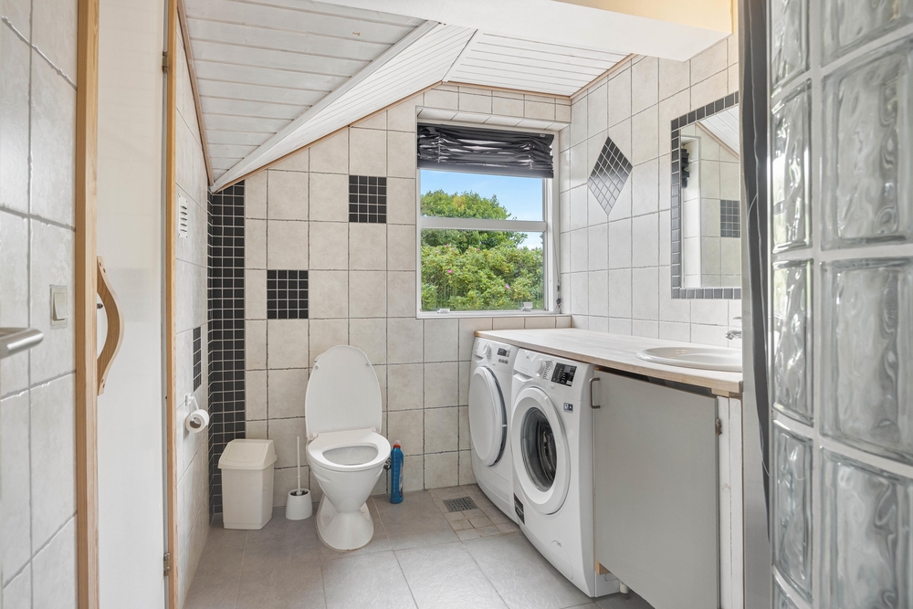 I sommerhuset har I 2 badeværelser med gulvvarme, så I både slipper for at stå i kø og kolde fødder fra morgenstunden. Fra det ene af badeværelserne har I desuden adgang til sommerhusets sauna, hvor I kan nyde masser af afslapning i løbet af ferien.