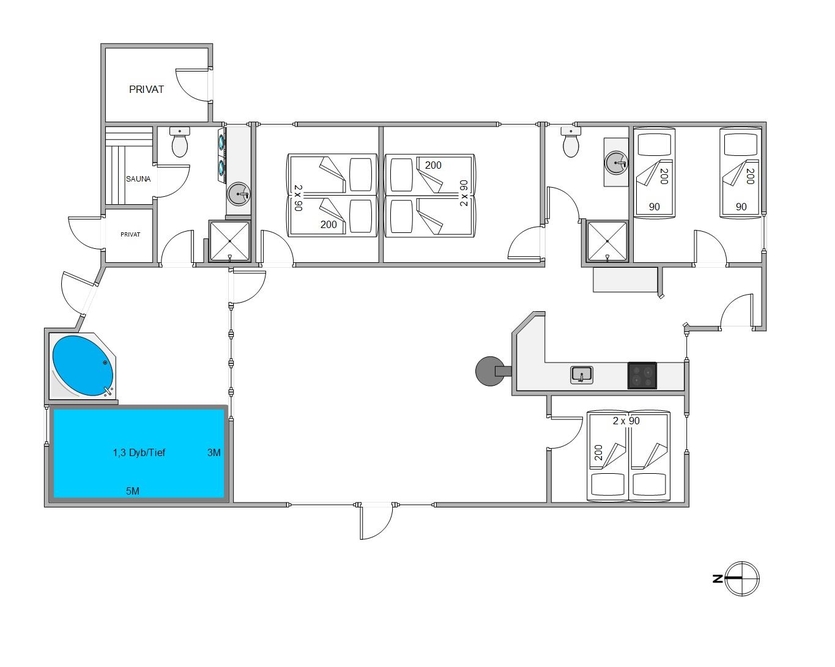 Et af højdepunkterne i sommerhuset på Kløvervej 9 i Henne er poolrummet. Her venter jer nemlig sommerhusets 15 kvadratmeter store swimmingpool, hvor feriens vandhunde helt sikkert vil komme til at tilbringe mange sjove og underholdende timer.