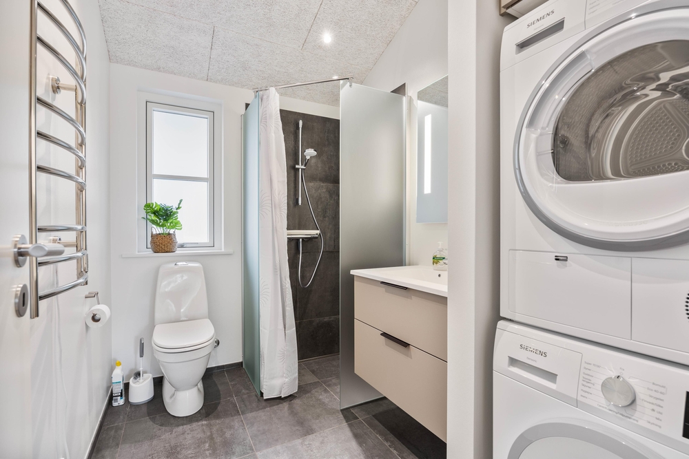 Det skønne sommerhus på Koglevej 4 indeholder 3 soverum, alle udstyret med 3 dobbeltsenge og det er behagelige nye senge, som er med til at sikre, at I vågner friske og veludhvilede om morgenen, klar til nye eventyr på ferien. Der er 2 gode badeværelser, begge har gulvvarme, og i det ene finder I husets egen sauna. Her kan I slappe af og lade tankerne flyve, alt imens I lader batterierne op på ny. Når I kommer hjem fra en dejlig gåtur ved stranden, kan I skylle fødderne fri for sand under udebruseren. I vil kunne benytte jer af udebruseren i perioden april til november.