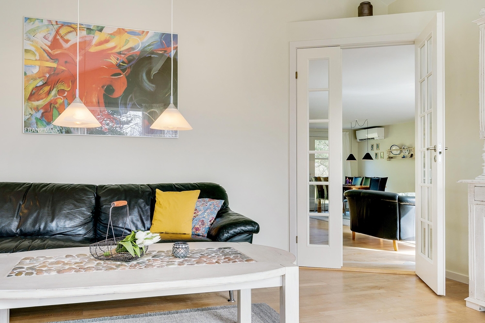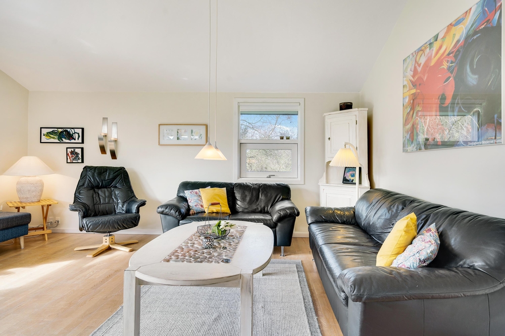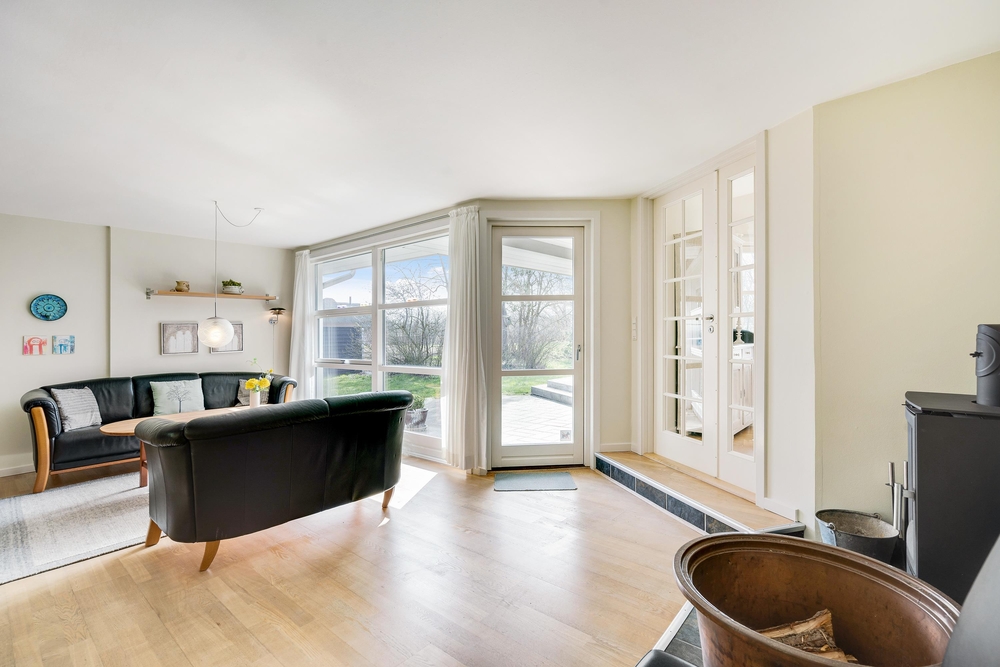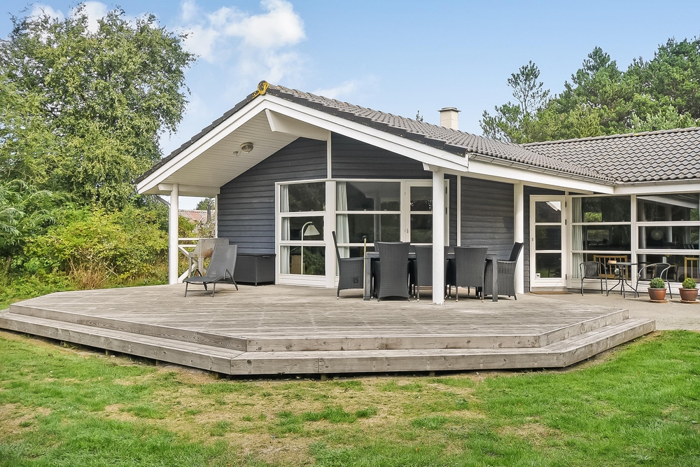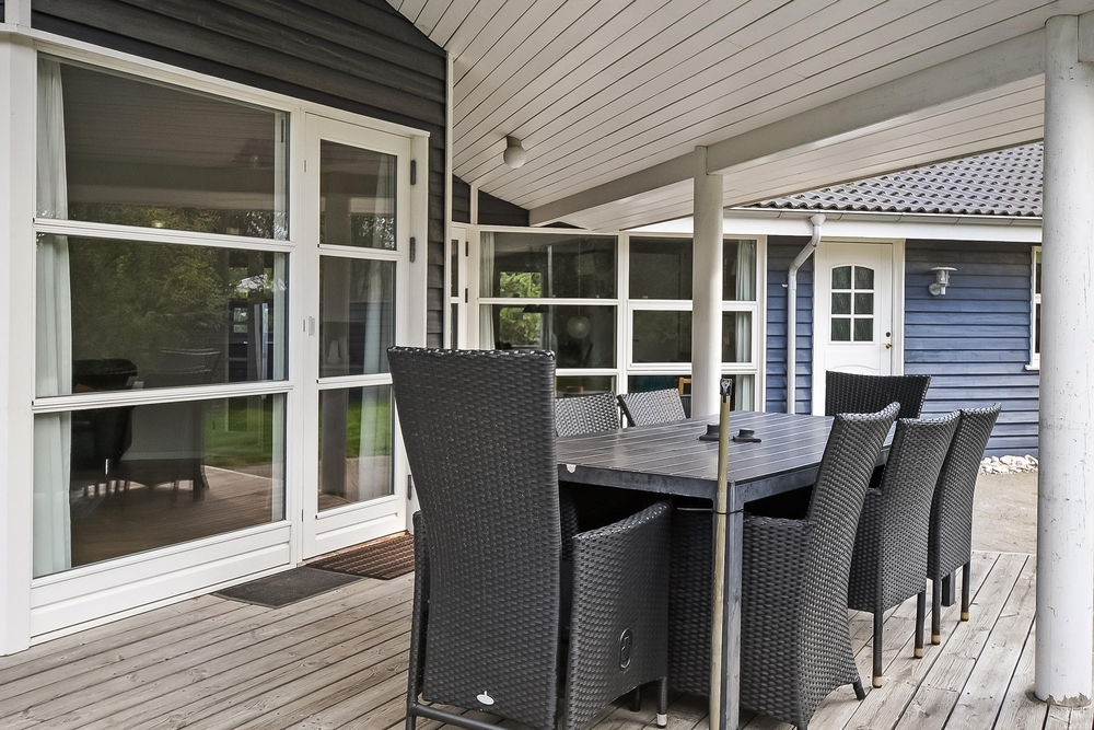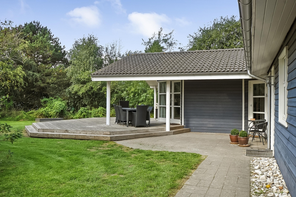 Ferietid er ofte terrasse- og grillmadtid, og det er supernemt her på Kollemarken 2! Med direkte udgang fra spisestuen finder I en stor fin terrasse med et overdækket område, så grillmaden ikke bliver vejrafhængig. Her er der gode læhjørner, men også en stor let forhøjet træterrasse, hvor I kan tanke masser af sol og slappe af, imens børnene leger i sandkassen og gynger. Huset ligger dejligt privat på en stor grund omrandet af træer. Her er dejligt privat og god plads til leg med børn og hund.