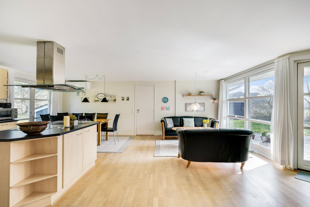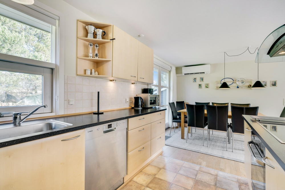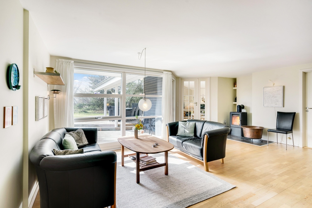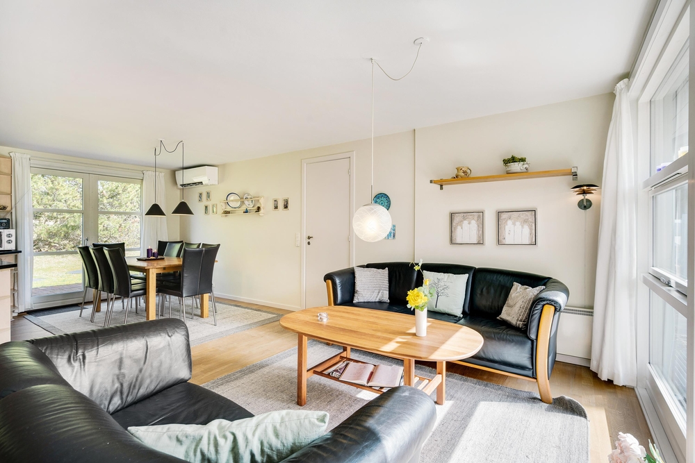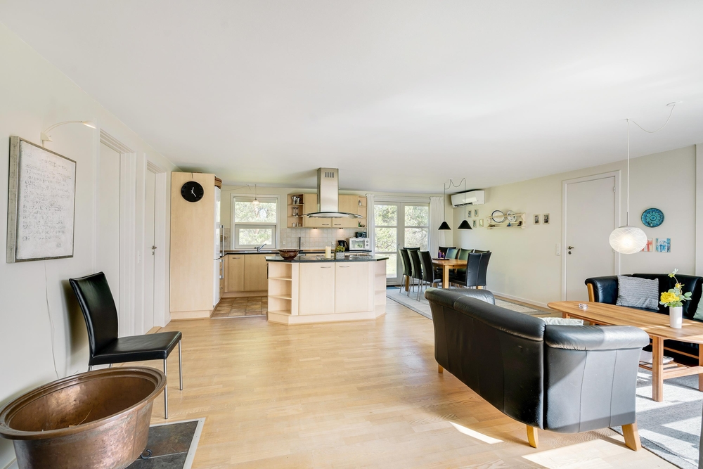 Det lyse og flotte hus er indrettet med alle bekvemmeligheder. For at give jer mulighed for optimal feriehygge, er her både vaskemaskine, tørretumbler og selvfølgelig opvaskemaskine. I det store flotte køkken med kogeøen er der god plads til i fællesskab at tilberede lækre måltider, og imens opvaskemaskinen klarer resten er der god tid til familiespil ved det store spisebord. Huset er udstyret med en energisparende varmepumpe og der er naturligvis gulvarme i badeværelserne. Vil I have det ekstra hyggeligt, så kan I naturligvis tænde op i husets lille brændeovn.