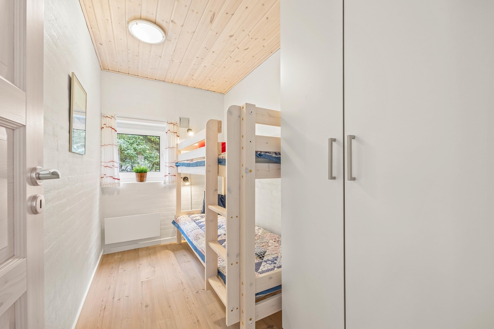 Når mørket falder på og øjnene begynder at falde i, står de fire soveværelser klar til jer! På to af værelserne er der dobbeltsenge på henholdsvis 180×200 cm og 140×200 cm, på det tredje værelse er der to enkeltmandssenge, 90×200 og på det sidste værelse køjesenge. Køjesengen måler 70×200 og vil sikkert være et hit hos børnene.