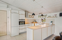 Poolen falder helt sikkert i god jord hos især børnene, der kan få timevis af sjov med dykning eller en badebold, imens den står på afslapning i spaen eller i den unikke infrarødsauna, som giver en rar varm fornemmelse i kroppen. Indefra poolrummet kan man gennem det store glasparti se ud i køkkenalrummet. Det veludstyrede køkken står klar til brug, og i modsatte ende kan I dumpe ned i sofaarrangementet efter en lang dag i poolen eller i Blåvand. I hjørnet af stuen findes også pejsen, som spreder hygge og varme.