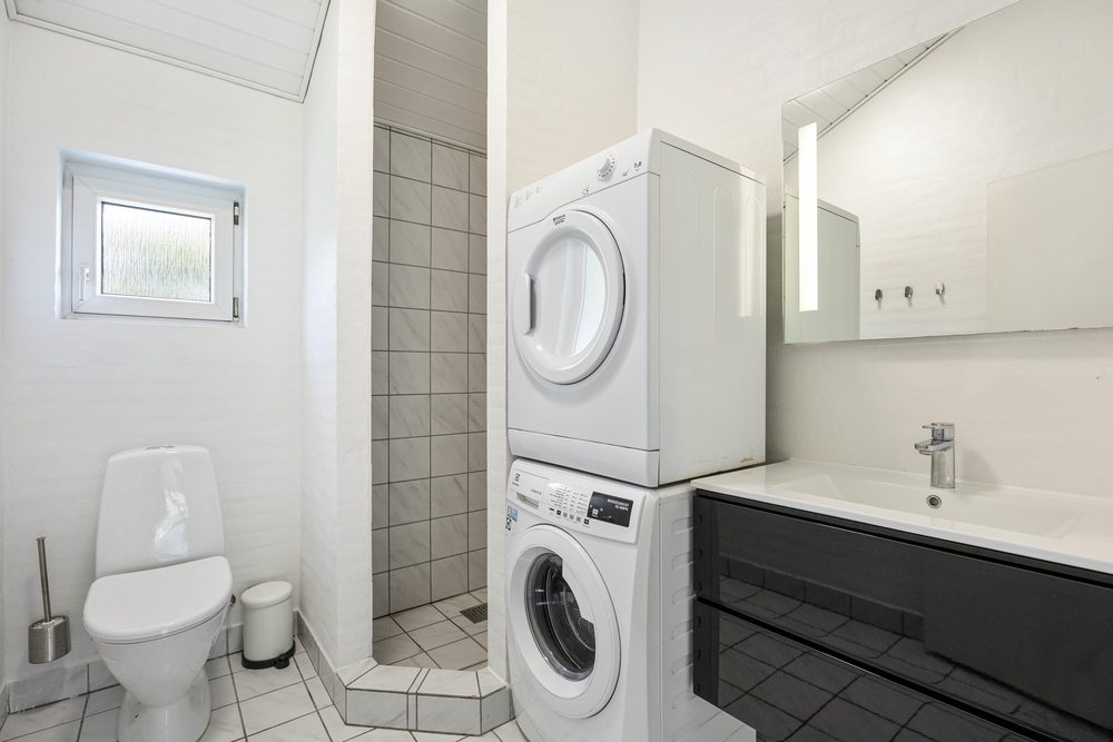 Vaskemaskine og tørretumbler er her også, så der er mulighed for at vaske tøj eller opfriske strandhåndklæderne under ferien.