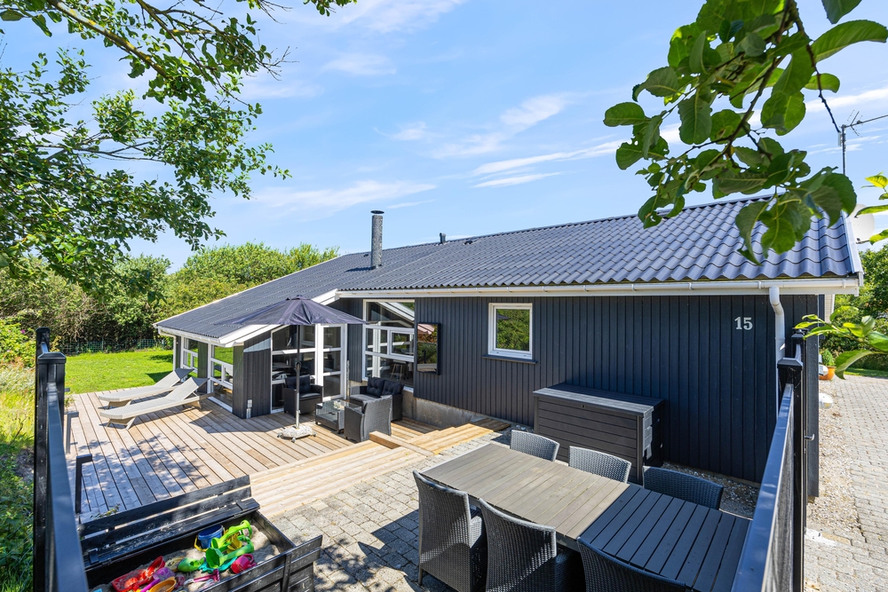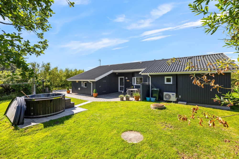 Leder I efter et rummeligt sommerhus i naturskønne omgivelser? Så er dette skønne sommerhus på Kr Madsens Vej 15 syd for Hvide Sande et godt bud. Med plads til 8 feriegæster og både indendørsspa, sauna, vildmarksbad og udebruser kan I slappe helt af. Det funktionelle sommerhus ligger cirka 200 meter fra Ringkøbing Fjord ? velkommen indenfor.