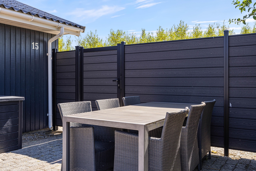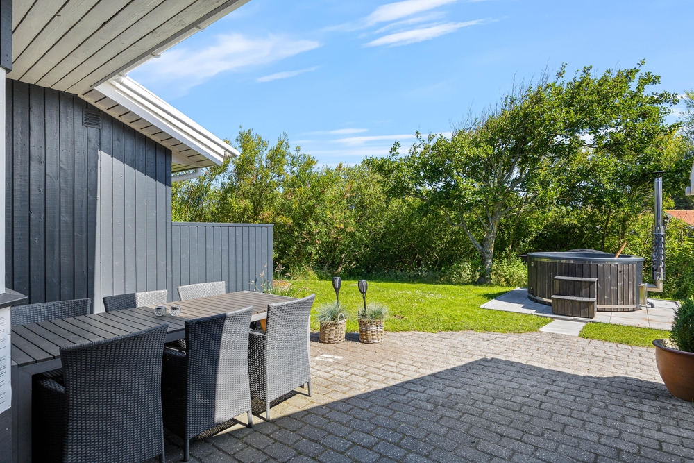 En oplevelsesrig dag skal afsluttes med et lækkert grillmåltid på terrassen med et køligt glas vin, og efterfølgende kan I skylle jer under udebruseren og hoppe en tur i det varme vildmarksbad ? dét er ægte ferie. Udebruseren kan benyttes fra april til november.