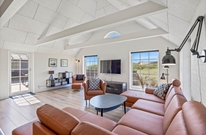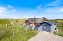 Fra stuen kommer I ud på terrassen, hvor I rigtig kan nyde den flotte udsigt ud over klitlandskabet, og hvis I hører godt efter, kan I næsten høre bølgernes brusen, mens I nyder et glas rødvin rundt om havebordet.