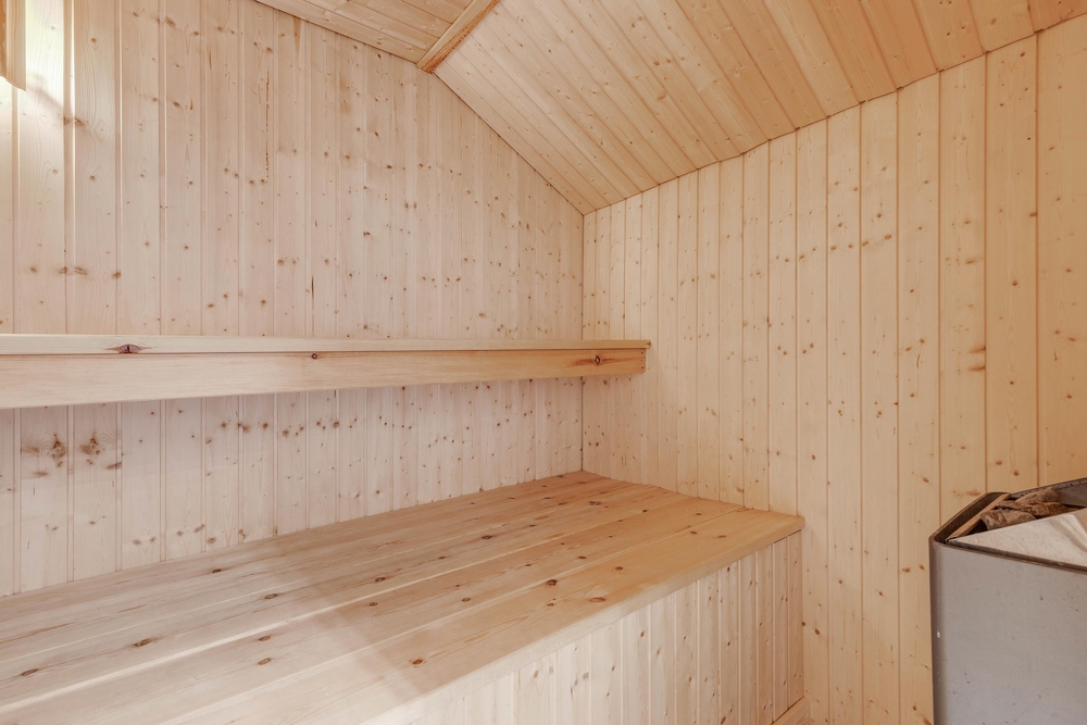 På det ene af de 3 badeværelser finder I også et lille wellnessområde, hvor I kan blive forkælet med masser af afslapning på ferien. Her kan I sætte jer til rette i det varme, boblende vand i spaen eller læne jer tilbage i varmen i saunaen. Her kan I virkelig komme ned i gear og få ladt jeres batterier op igen.