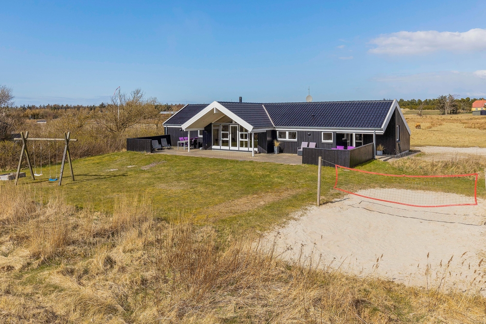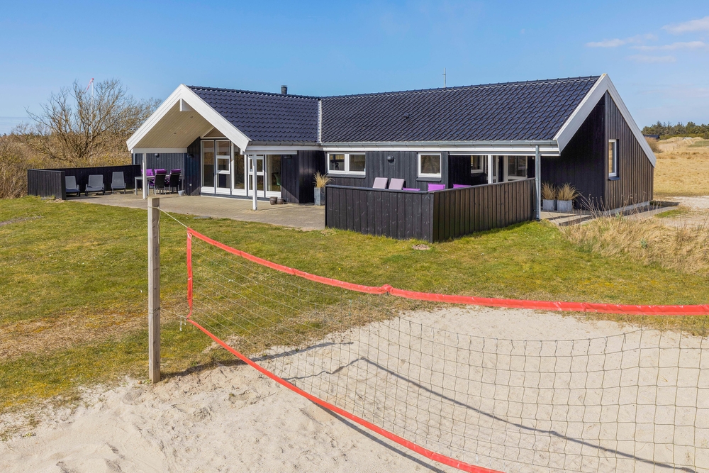 Sommerhuset er beliggende på en grund, der er 2.500 kvadratmeter stor, og her venter jer et stort udeområde med noget for både store og små. Her har I blandt andet en beachvolleybane, hvor I kan spille masser af beachvolley på jeres ferie ? hvem mon udgør det bedste hold?
