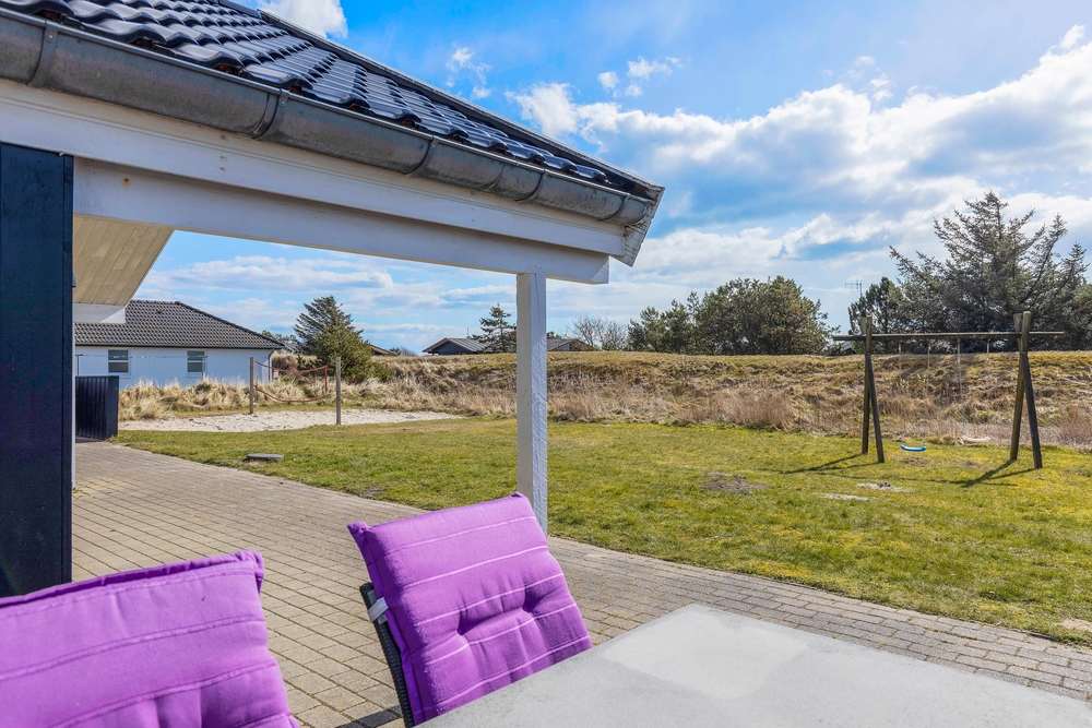 Vil I hellere slappe af i solen, kan I gøre det på terrassen, hvor der både står havemøbler og liggestole klar til jer, som I kan finde jer godt til rette i. Skulle I få brug for at sidde i skyggen, kan I rykke ind under terrassens overdækkede del. Til børnene er der både sandkasse og gyngestativ, de kan få glæde af i haven.