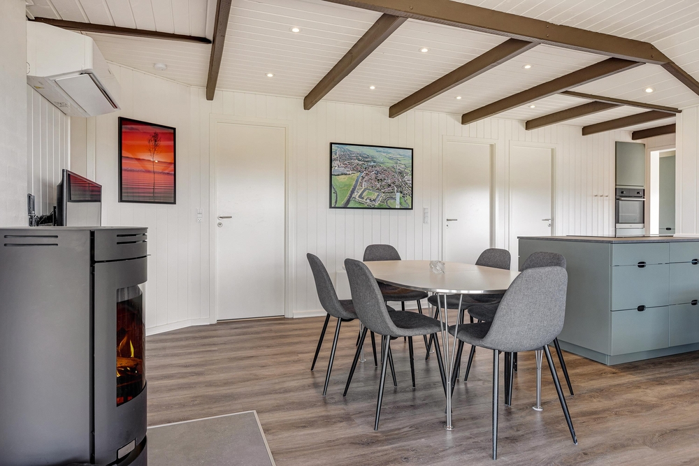 I feriehuset venter jer en hyggelig og indbydende indretning. Den energibesparende varmepumpe sørger for en behagelig temperatur, mens brændeovnen også spreder en ekstra hyggelig feriestemning.