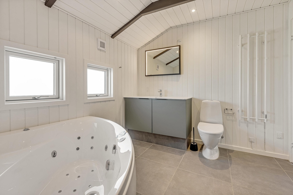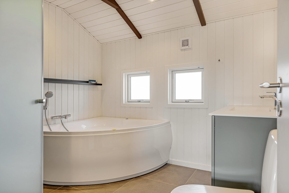 De 2 badeværelser i sommerhuset er særligt praktiske; ingen kø om morgenen, så dagen kan starte afslappet ud. Her er desuden gulvvarme, så I ikke fryser fødderne. Efter en lang gåtur på stranden kan I varme jer i sommerhusets sauna.