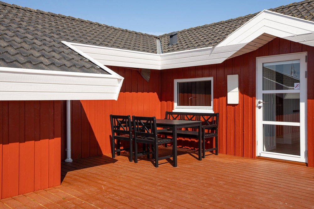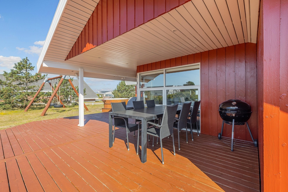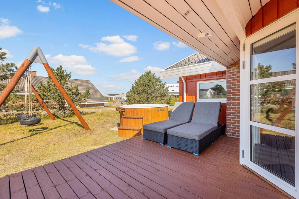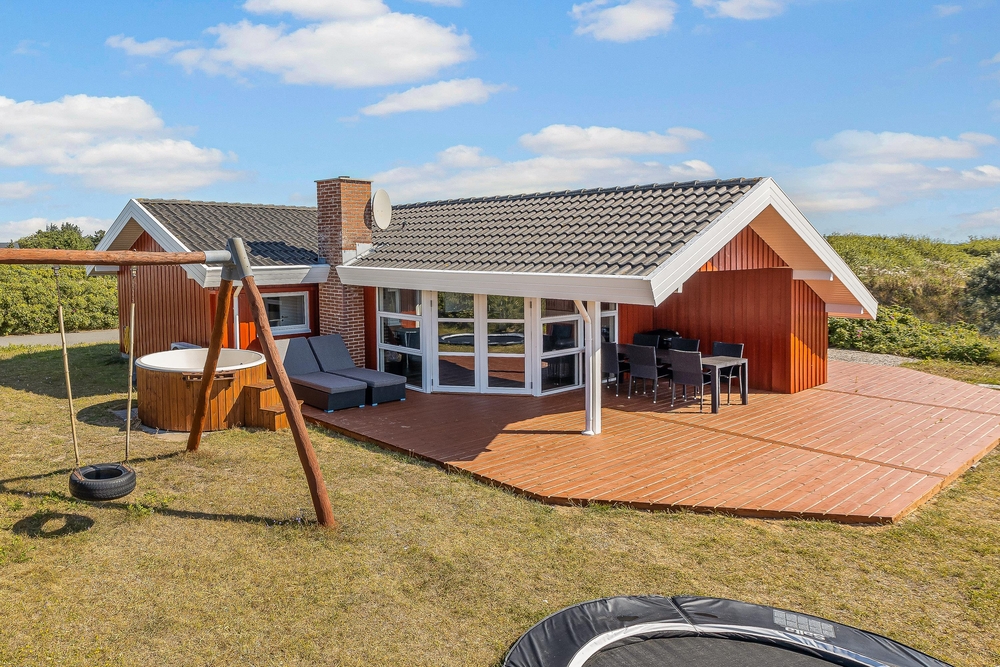 Det hyggelige sommerhus ligger på en naturgrund i ferieområdet Lakolk. Mens forældrene slapper af med en kop te på den delvist overdækkede terrasse, kan børnene boltre sig og lege i haven.