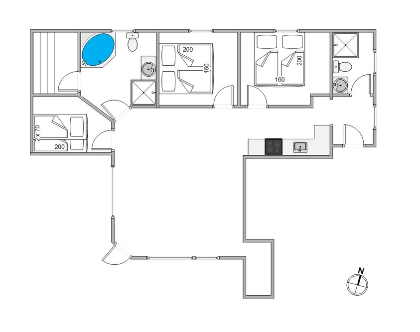 De 6 sovepladser fordeler sig på 3 gode soveværelser, hvoraf der er 2 dobbeltsenge. Det sidste værelse er indrettet med en køjeseng, som er et stort hit for børnene.