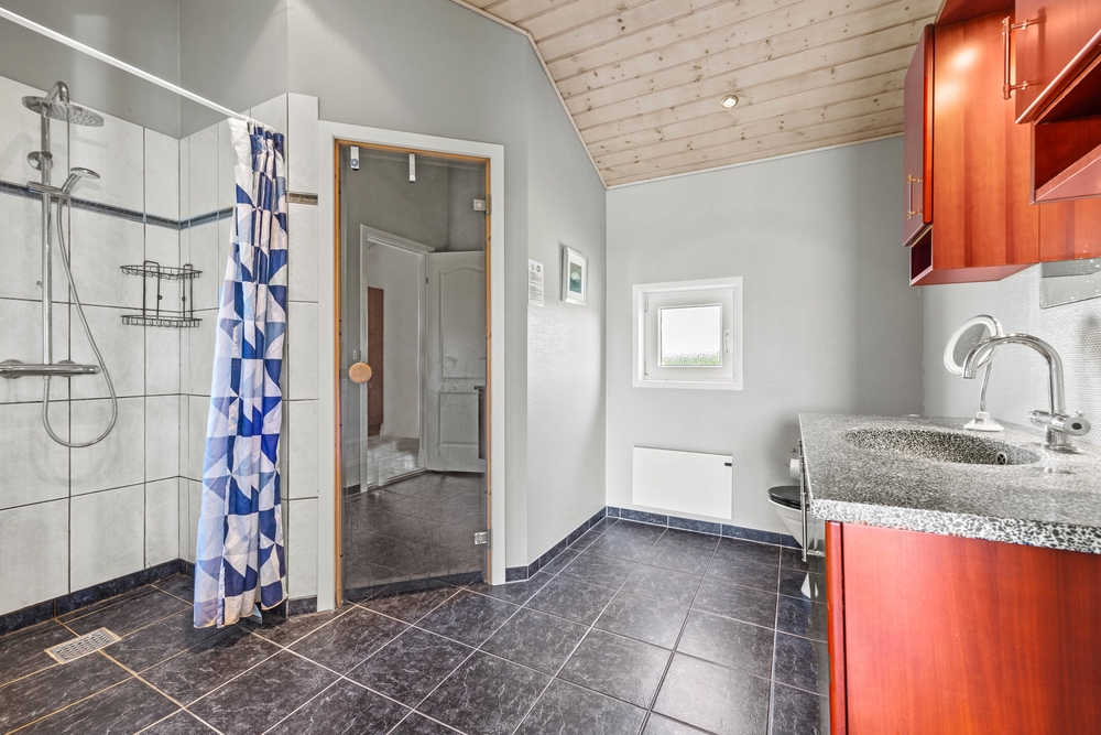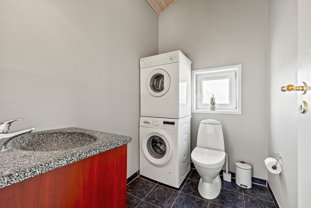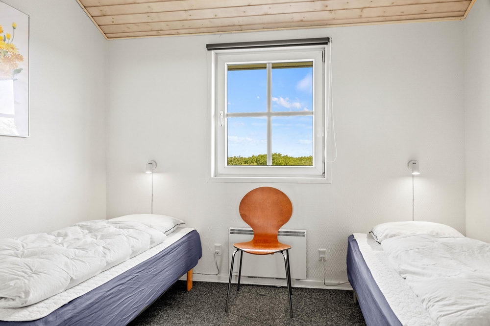 I badeværelset med spabad og sauna kan I arrangere jeres egen lille wellnessaften. Der er også gæstetoilet, vaskemaskine og tørretumbler til jeres rådighed, så I kan opfriske håndklæderne i løbet af ferien. De 4 soveværelser har 8 komfortable sovepladser, 2 værelser med dobbeltsenge 160 x 200 cm, og 2 værelser med hver 2 enkeltsenge 90 x 200 cm, så I kan fordele jer, som det passer jer bedst. Til børnene er der barneseng og højstol.