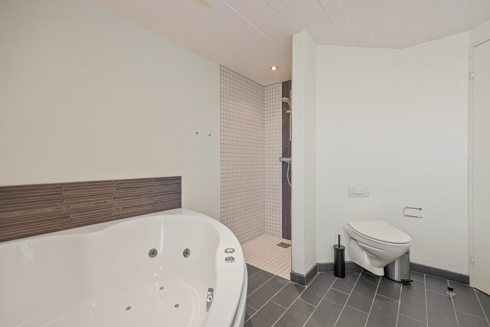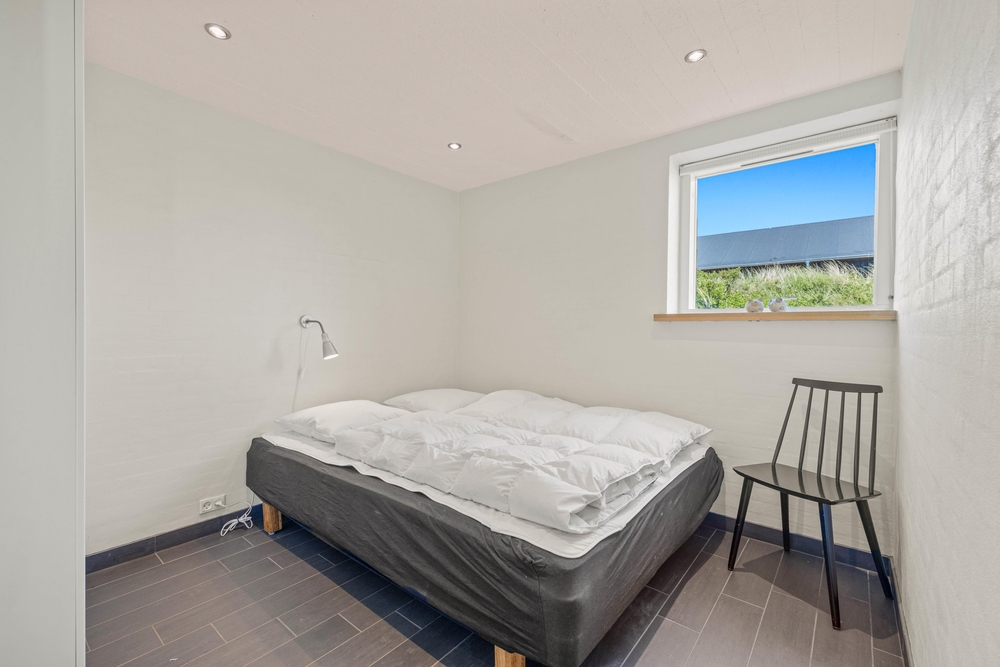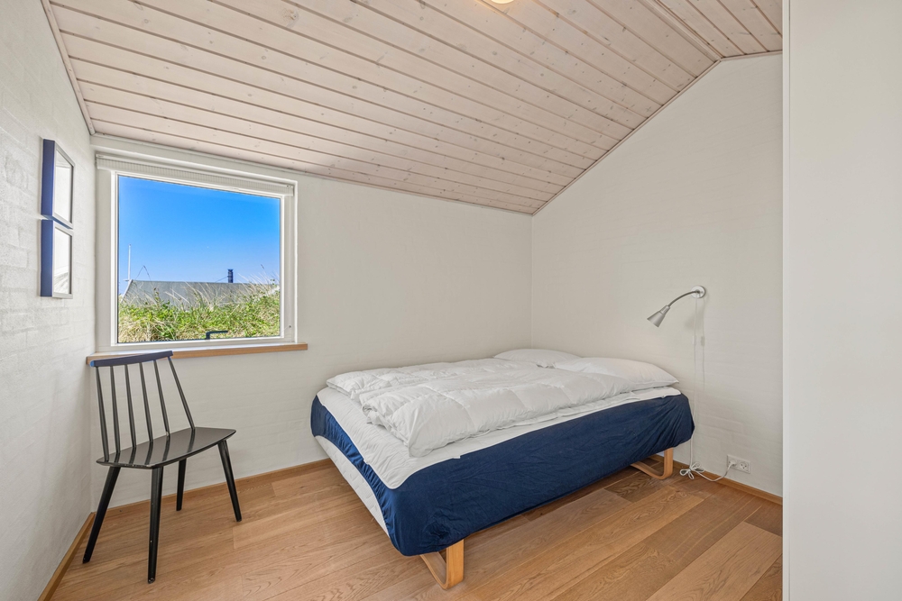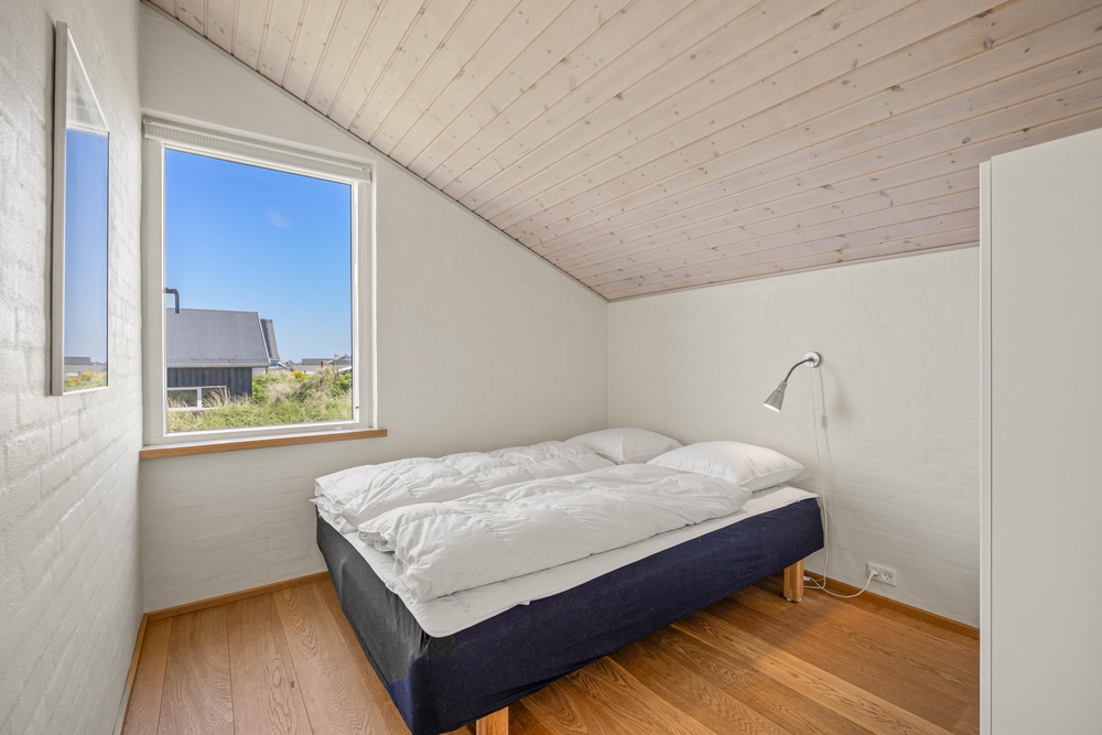 De 2 badeværelser med gulvvarme er begge moderne og funktionelle, hvilket sikrer en varm og behagelig start på dagen, selv i de kolde måneder. I det ene- finder du en tømmespa, som indbyder til ren afslapning. Der er vaskemaskine til rådighed for jer, så I kan opfriske garderoben i løbet af ferien. Sommerhuset er udstyret med 4 rummelige soveværelser, hver indrettet med en komfortabel dobbeltseng, hvor I kan få en rolig nattesøvn i den friske vesterhavsluft. Læg mærke til, at den friske luft gør noget godt for nattesøvnen.