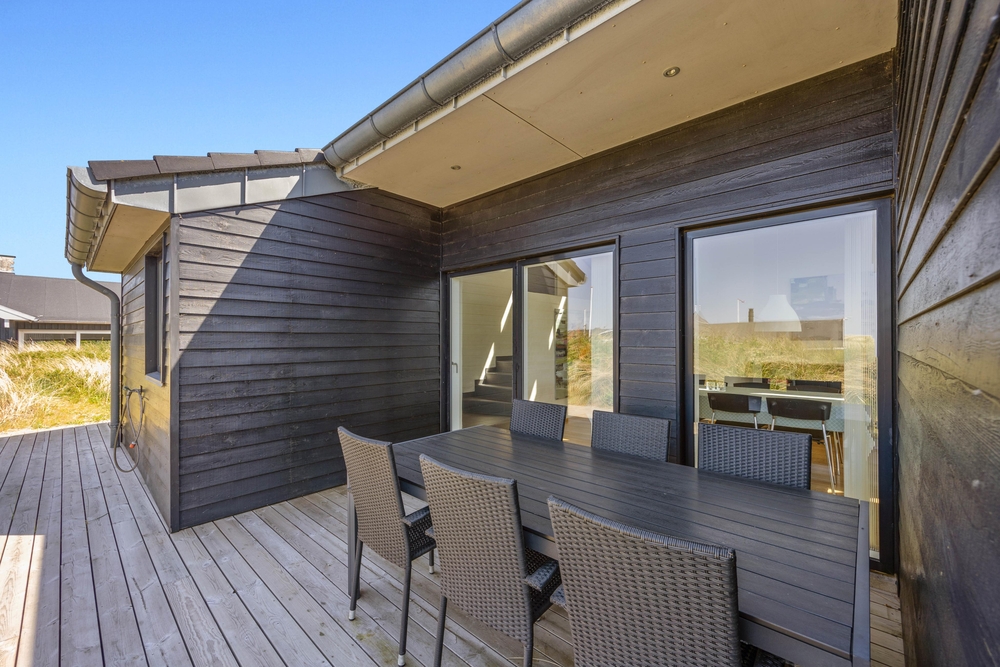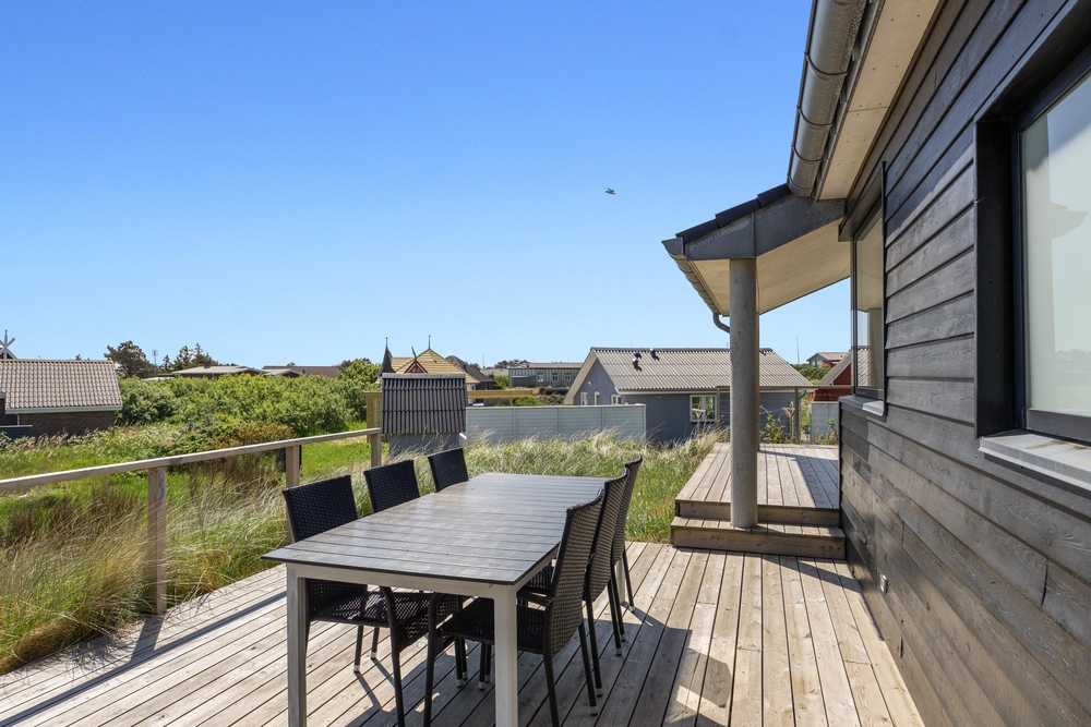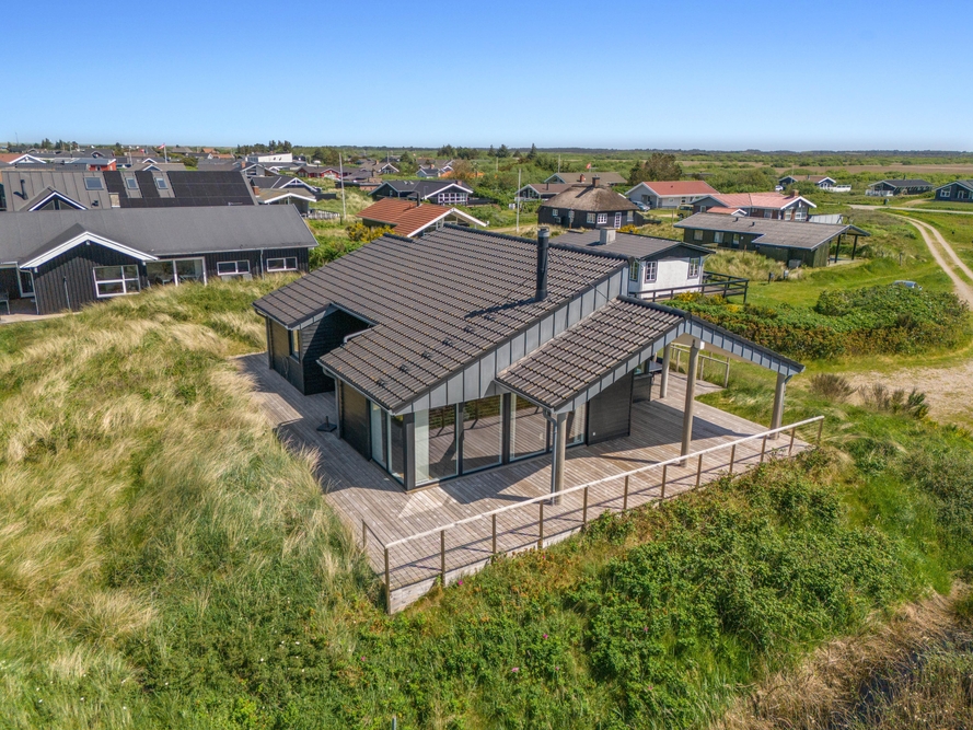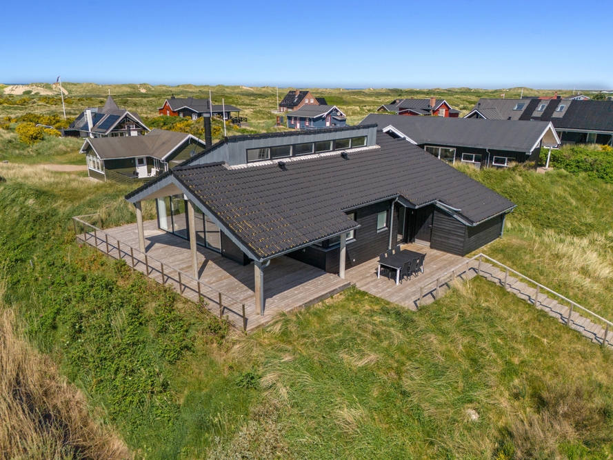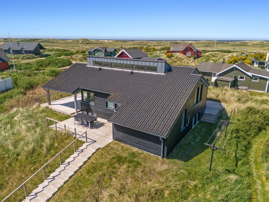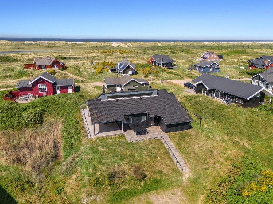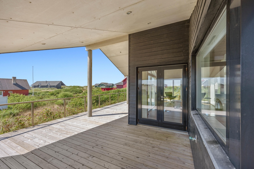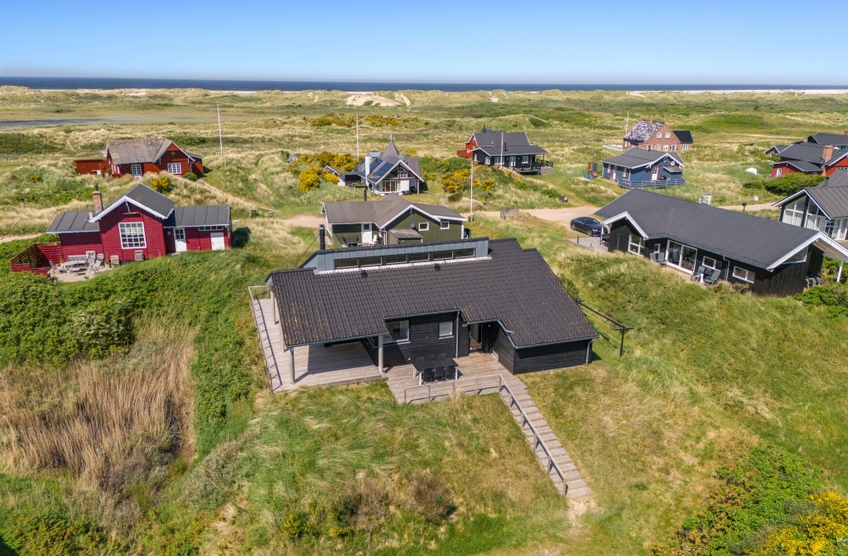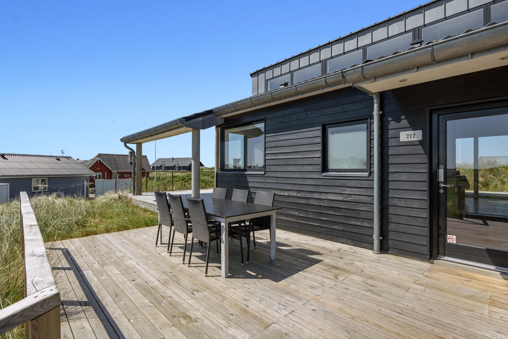 På Lakolk 222 finder I et smukt sommerhus med arkitektoniske detaljer. Det rummelige sommerhus på 137 kvadratmeter har plads til op til 8 personer. Beliggenheden er perfekt, kun 600 meter fra Vesterhavet og 800 meter fra de nærmeste indkøbsmuligheder. Her har du alt, hvad du behøver for at få en afslappende, men samtidig aktiv ferie med familie eller venner. Bemærk venligst, at der er trapper op til sommerhusets indgang på toppen af en klit, så gangbesværede mennesker kan blive udfordret.
