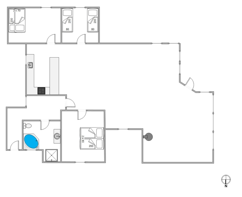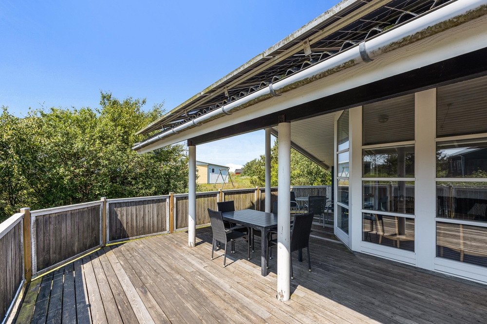 Skulle I ankomme med børn, er det praktisk at huset rummer både en vaskemaskine samt tørretumbler. Derudover er der ved huset et lille legeareal med sandkasse, gynger og rutsjebane, som børnene kan benytte sig af. Mens børnene leger, er det muligt for jer at læne jer tilbage på den overdækkede terrasse med en dejlig kop kaffe og en læsebog.