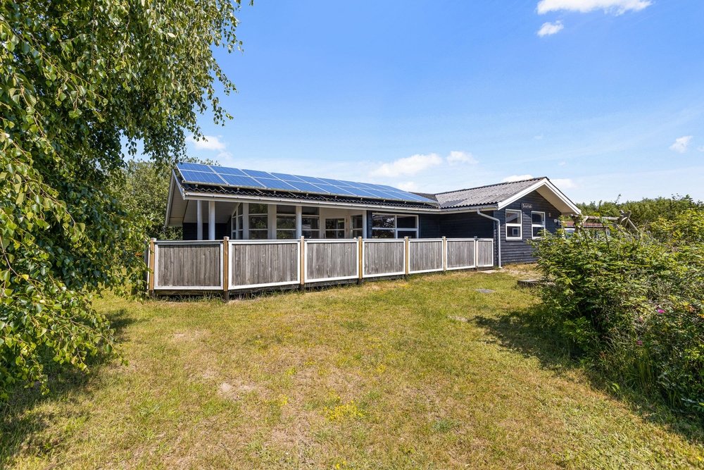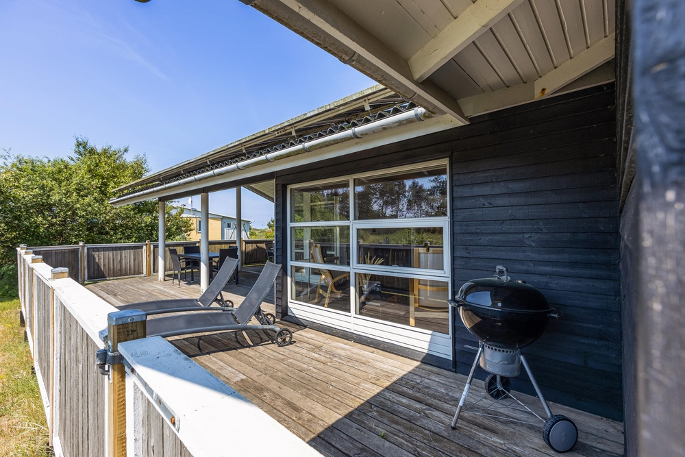 I dette klassiske og traditionelt indrettede sommerhus kan du nyde en dejlig ferie på Rømø med hele familien og eventuelle kæledyr, idet sommerhuset rummer 3 soverum til 6 personer. Feriehuset ligger på en dejlig stor naturgrund med plads til leg i både sandkassen, på gyngerne og på rutsjebanen. Samtidig er sommerhuset omsluttet af en stor overdækket og lukket terrasse, så man kan lade hundene gå løst samt sidde afskærmet i læ og nyde aftensmaden lavet på sommerhusets grill.