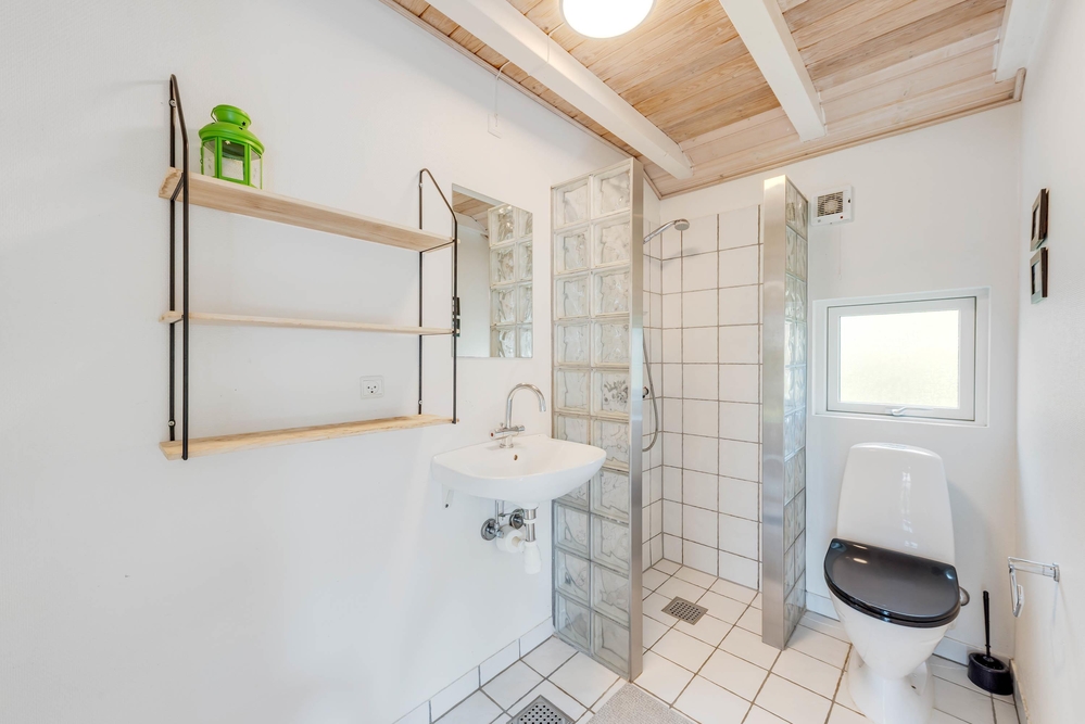 Feriehuset på Laust Digesvej 41 er udstyret med 2 flotte lyse badeværelser. Fra det ene badeværelse er der indgang til husets sauna, hvor I kan varme jer på de kolde vinterdage eller tanke nye kræfter efter en herlig feriedag ude i den friske luft. Derudover kan I nyde godt af lidt ekstra selvforkælelse i det lækre 2 personers spabad.