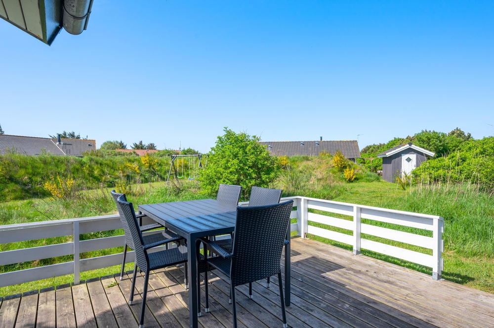 Fra stuen er der udgang til den store dejlige terrasse, som er omgivet af natur samt træer og buske, der giver jer både læ, privatliv og ikke mindst en god udsigt fra liggestolene ? her kan I virkelig nyde den friske luft og skønne natur i fulde drag.