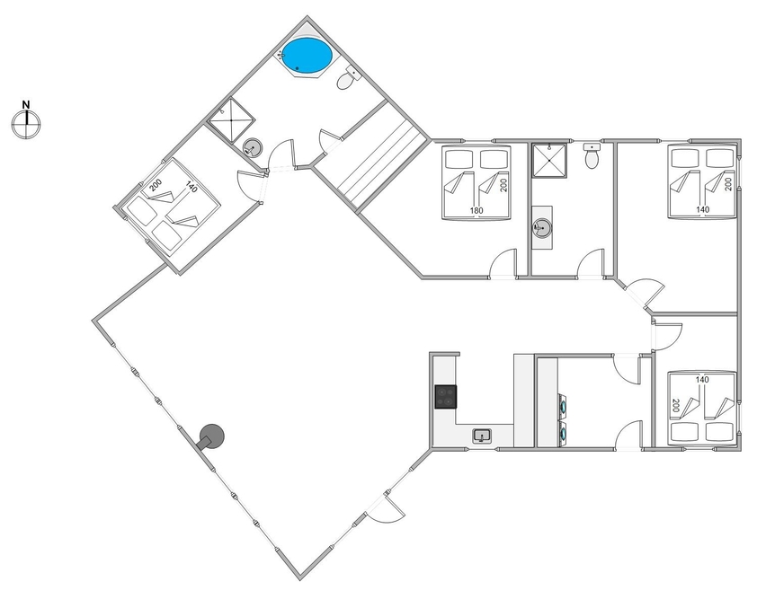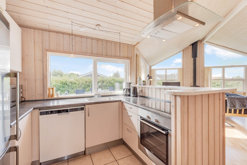 Sommerhuset er desuden udstyret med mange gode praktiske faciliteter, som gør ferien ekstra ukompliceret. I køkkenet finder I en opvaskemaskine, og derudover har ferieboligen både en vaskemaskine og en tørretumbler i den store bryggers. Den energivenlige varmepumpe er både en god hjælp til strømafregningen og et ekstra plus for miljøet.