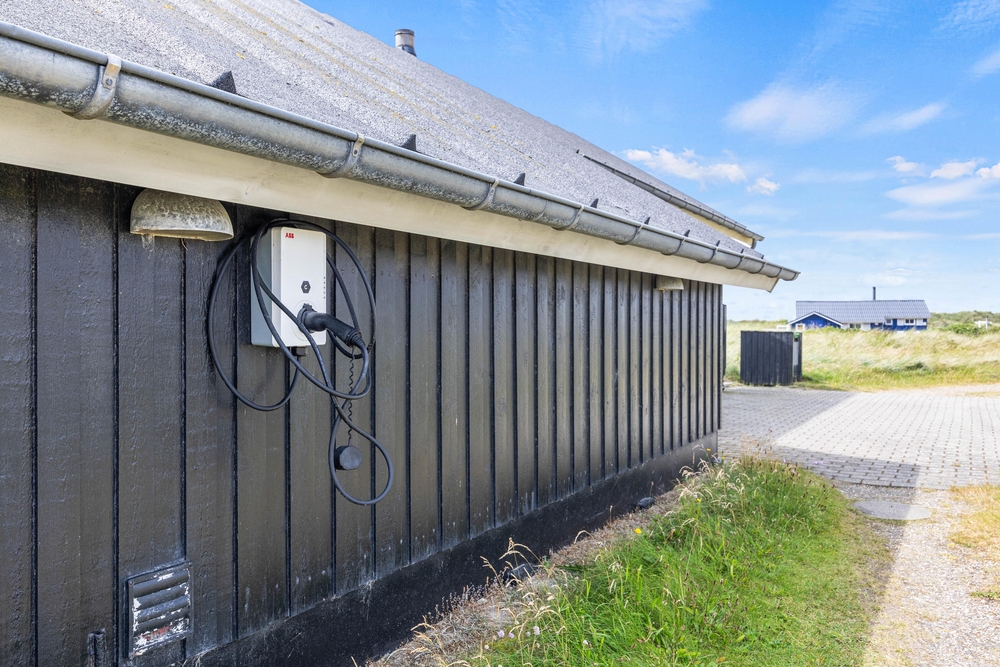 Bilen kan parkeres i sommerhusets garage, der kan aflåses, og hvis I ankommer i elbil, kan den oplades med sommerhusets egen ladestander. (type 2)