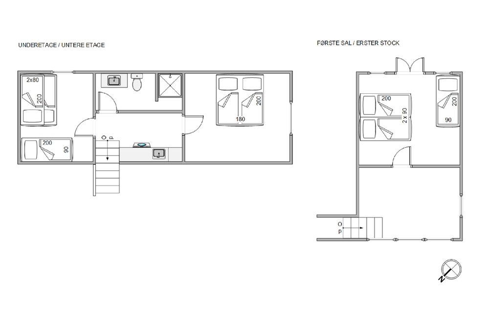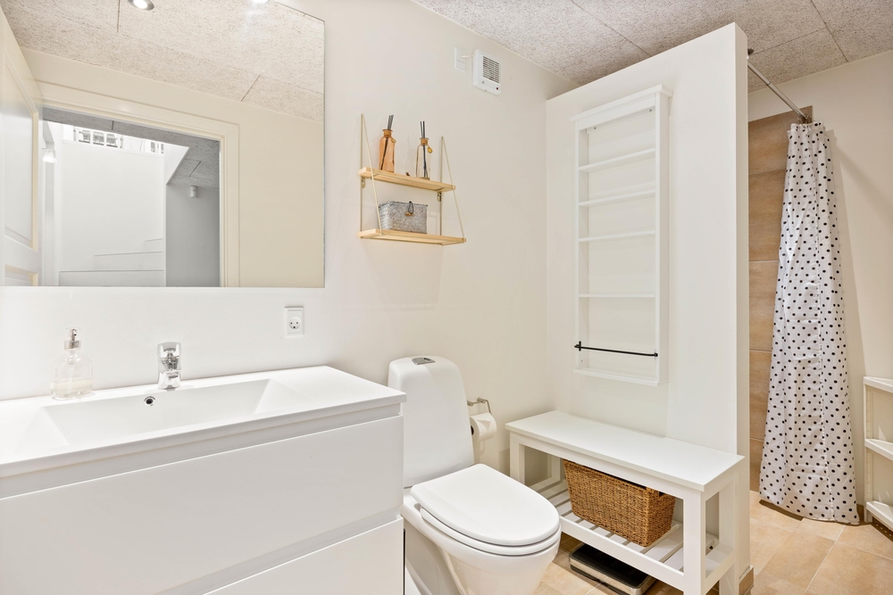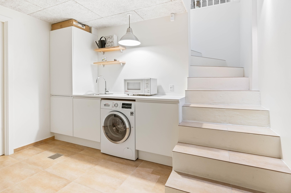 Kælderen til sommerhuset råder over et badeværelse og 2 soverum, hvor det ene råder over en køjeseng og en enkeltseng, og det andet soverum er udstyret med en dobbeltseng. Alle værelser i kælderen er udstyret med el-radiatorer. Desuden behøver I ikke bekymre jer om de praktiske gøremål, da sommerhuset har en kombimaskine med vaskemaskine og tørretumbler til rådighed, der klarer dette for jer.