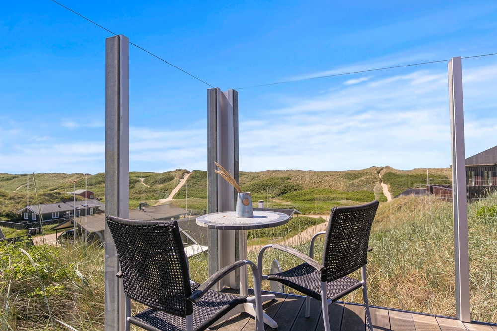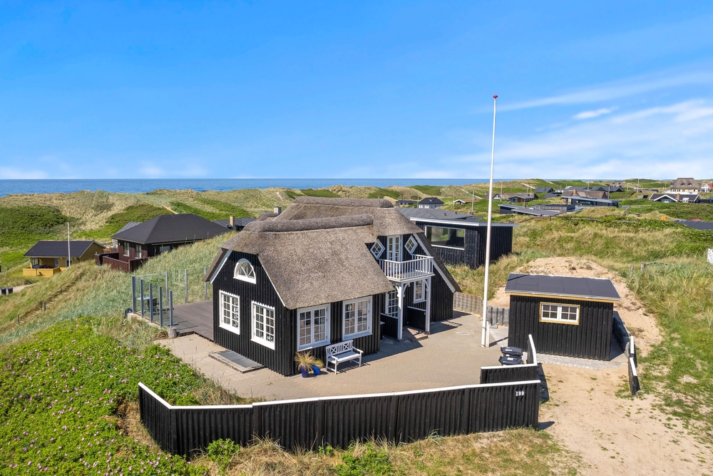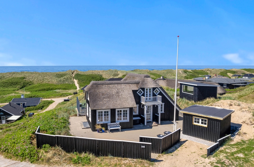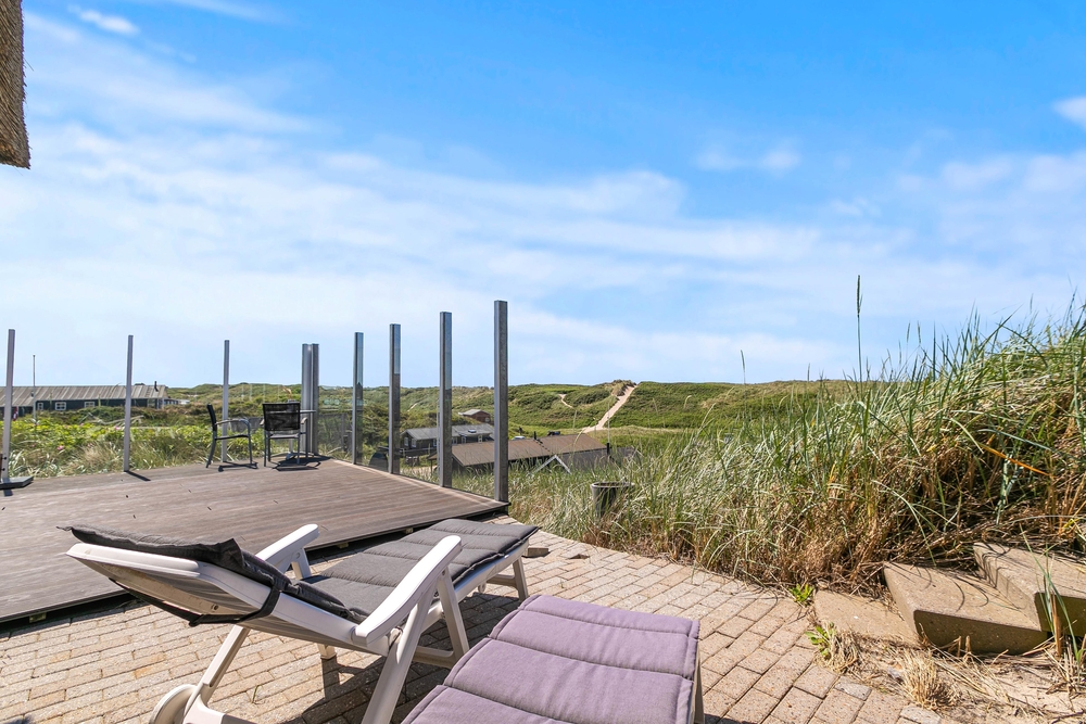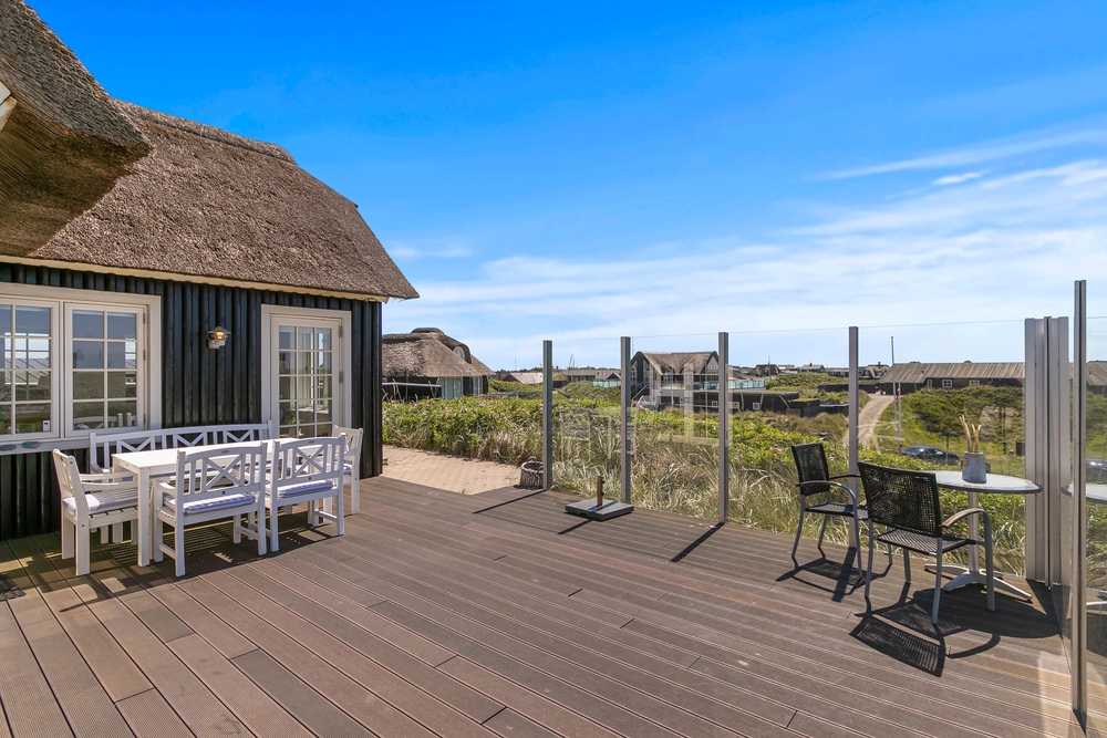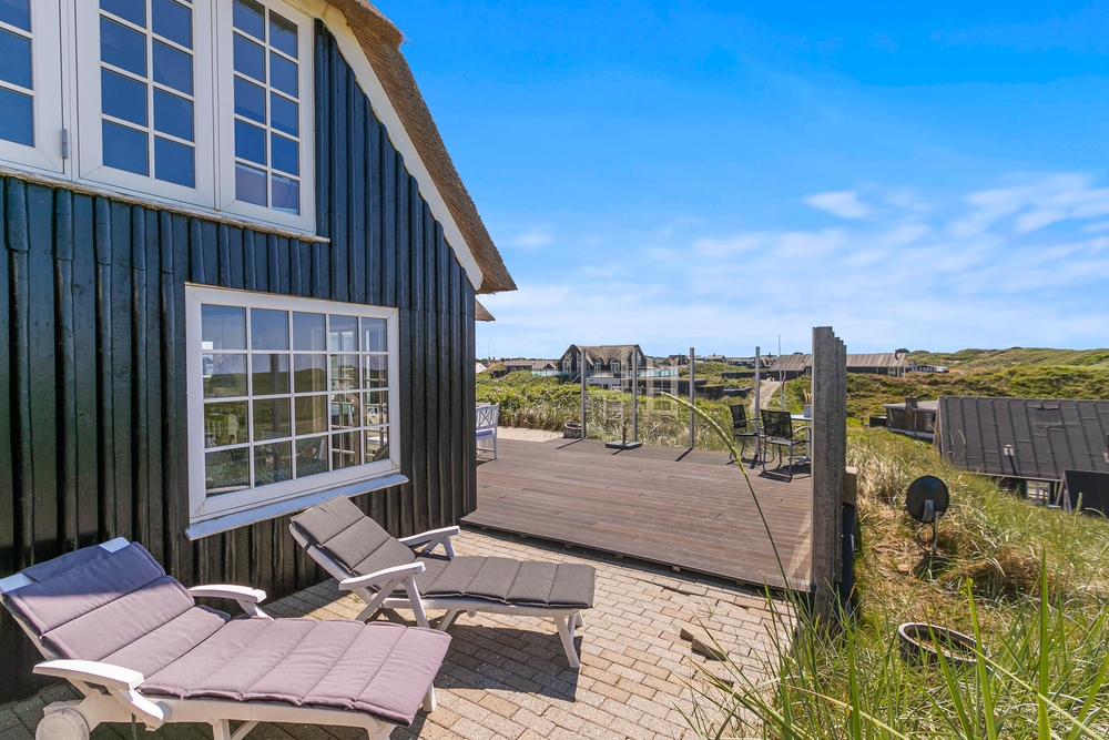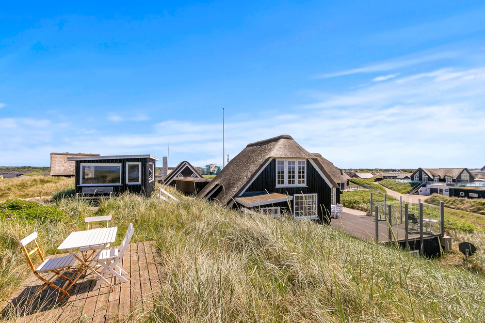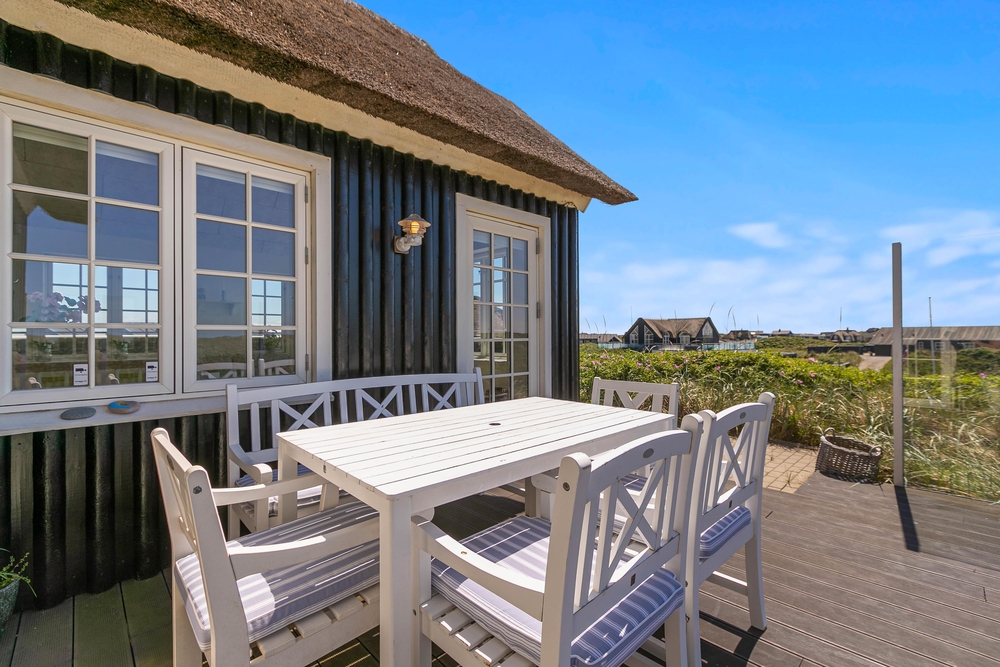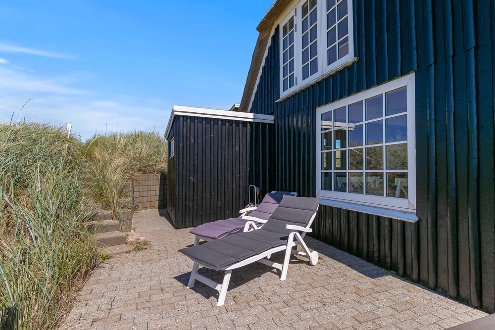 Til sommerhuset på Lodbergsvej 199 er der et skønt terrasseområde, hvor I på de lune sommerdage rigtigt kan sidde og nyde de skønne solnedgange med et glas koldt at drikke. Ydermere har I mulighed for at søge læ i den lille udehytte, hvor I vil kunne tage et spil, nyde et glas varmt eller koldt og hygge jer, alt imens det brusende Vesterhav ligger lige i baggrunden.