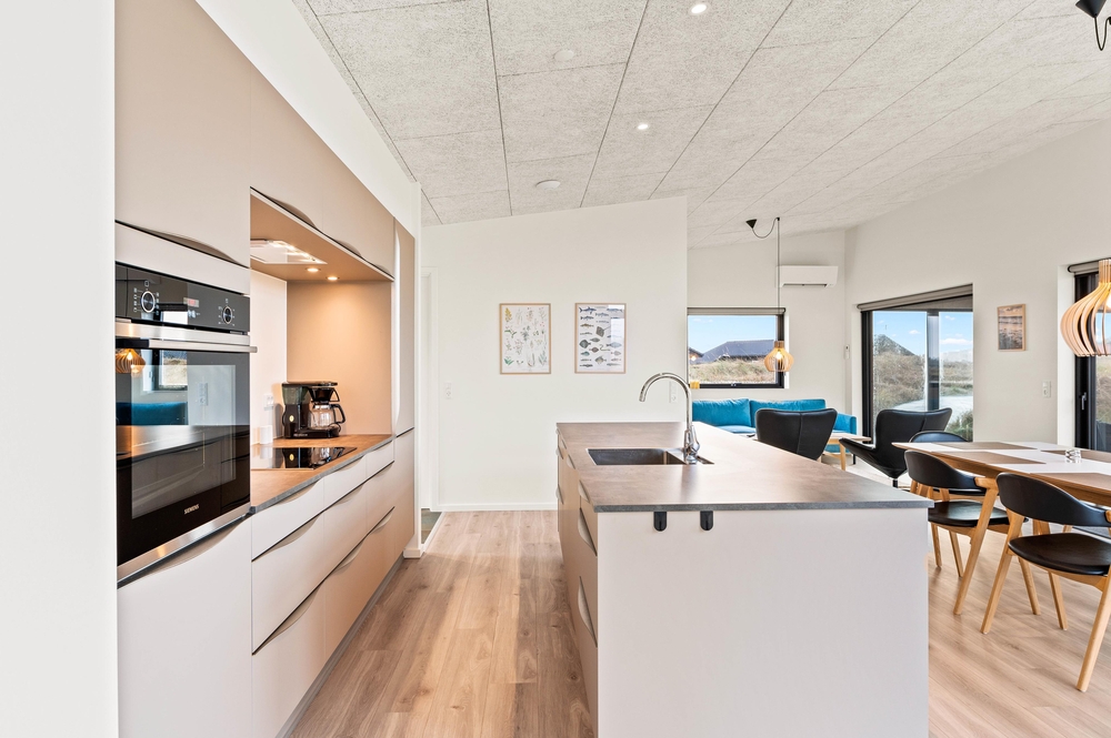 I feriehuset har I gode praktiske faciliteter i form af opvaskemaskine, vaskemaskine og tørretumbler, der hjælper jer med det praktiske husarbejde i løbet af ferien. Derudover er feriehuset indrettet med et højt isoleringsniveau og en energivenlig varmepumpe, der sørger for behagelige temperaturer.