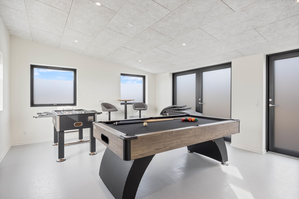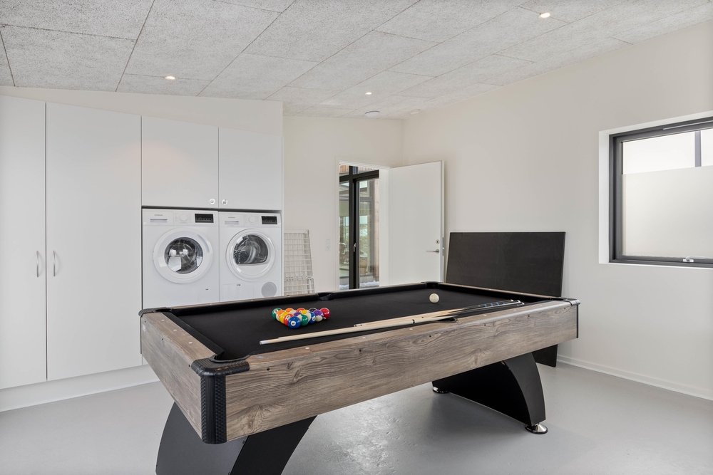 Feriehuset på Lodbergsvej 379 indehoder også et herligt aktivitetsrum med både bordfodbold, bordtennis og billard/pool som I kan hygge jer med på ferien, og holde turneringer i, mens opvaskemaskinen klarer opvasken.