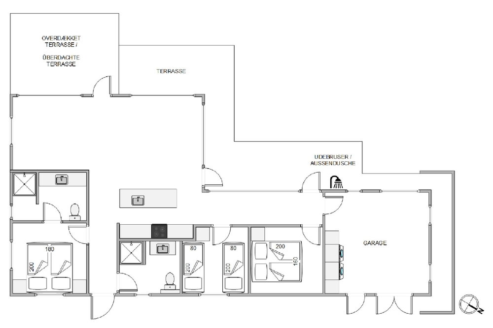 Som jeres energi efterhånden er ved at være brugt op, kan I så småt bevæge jer mod sommerhusets 3 soveværelser. Her kan I få jer en god nats søvn, så og få samlet ny energi. De tre soveværelser er i alt indrettet med to dobbeltsenge og to enkeltsenge. Når I står op næste morgen, skal I ikke stå i kø til badeværelset, da feriehuset rummer hele to badeværelser, der endda har gulvvarme.