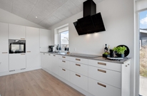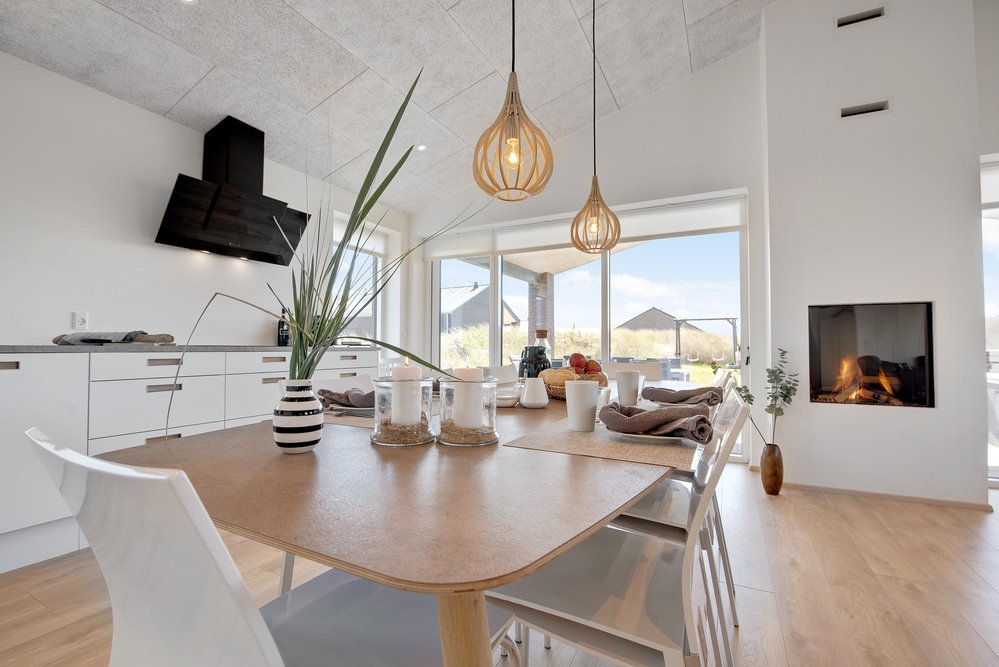 Huset er opført i moderne stil, lyst og venligt med store vinduespartier, lyse vægge og loft til kip. I det store køkken-alrum er der god plads til alle, og med køkkenets moderne interiør som fx induktionskogeplade, mikrobølgeovn og opvaskemaskine er det en ren fornøjelse sammen at trylle lækre måltider.