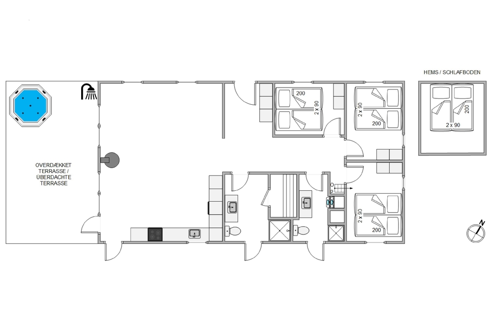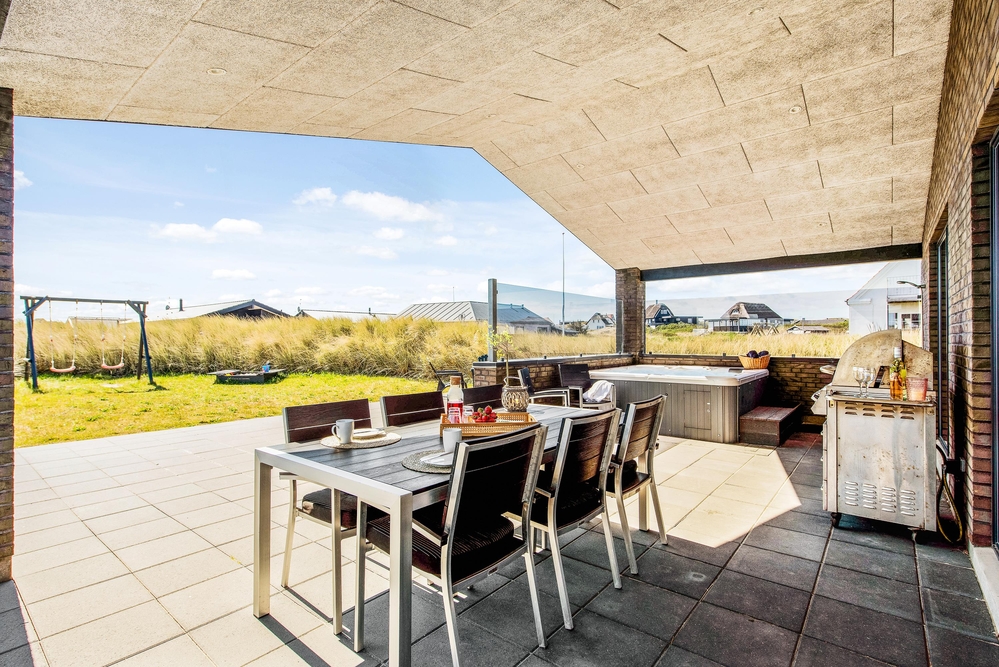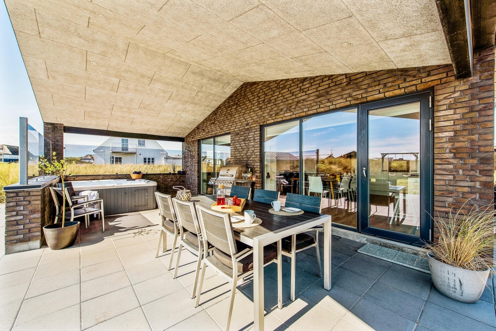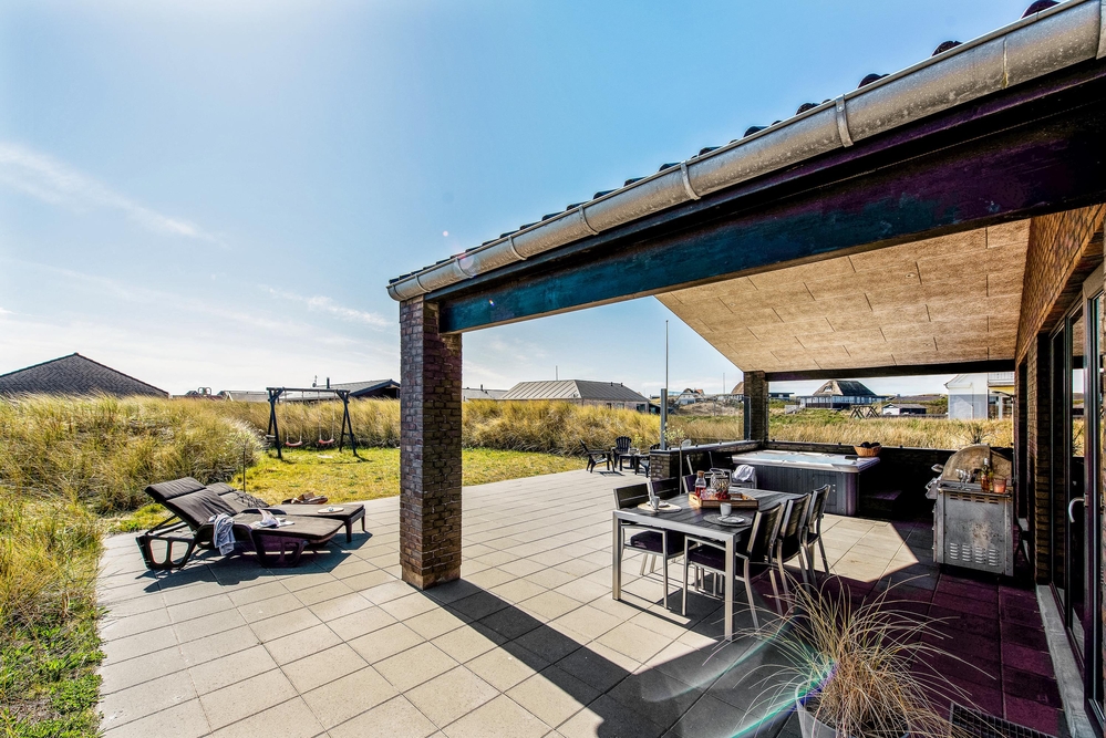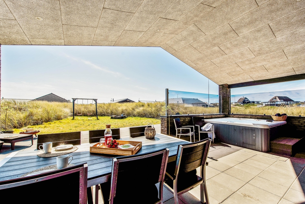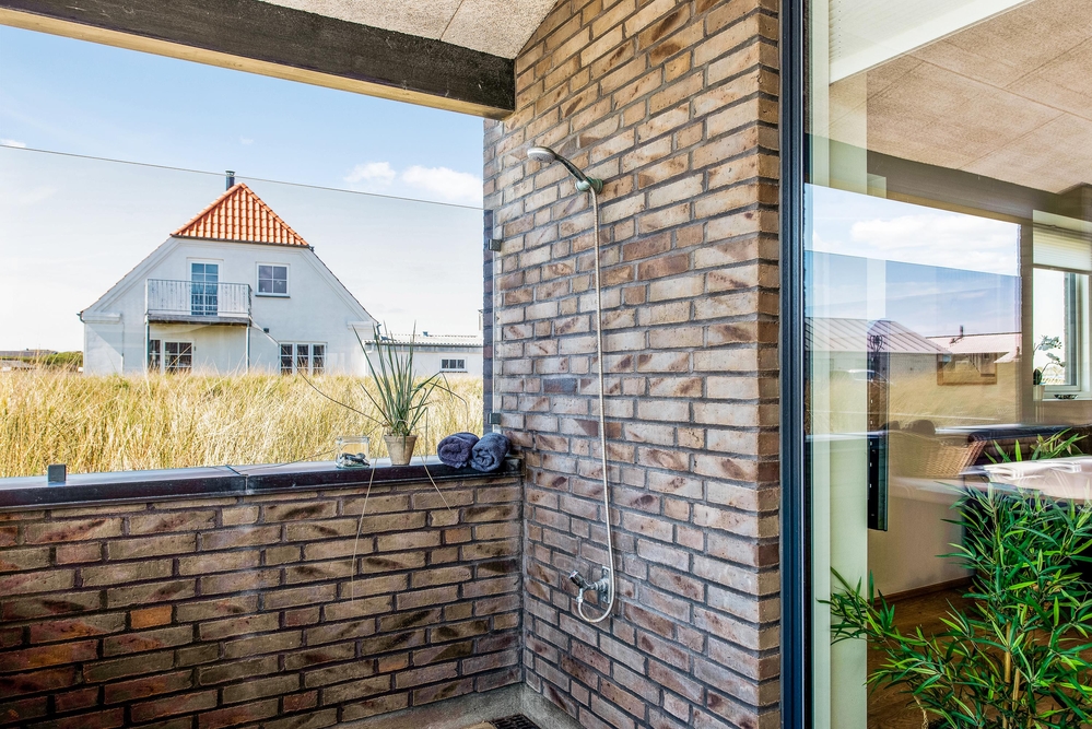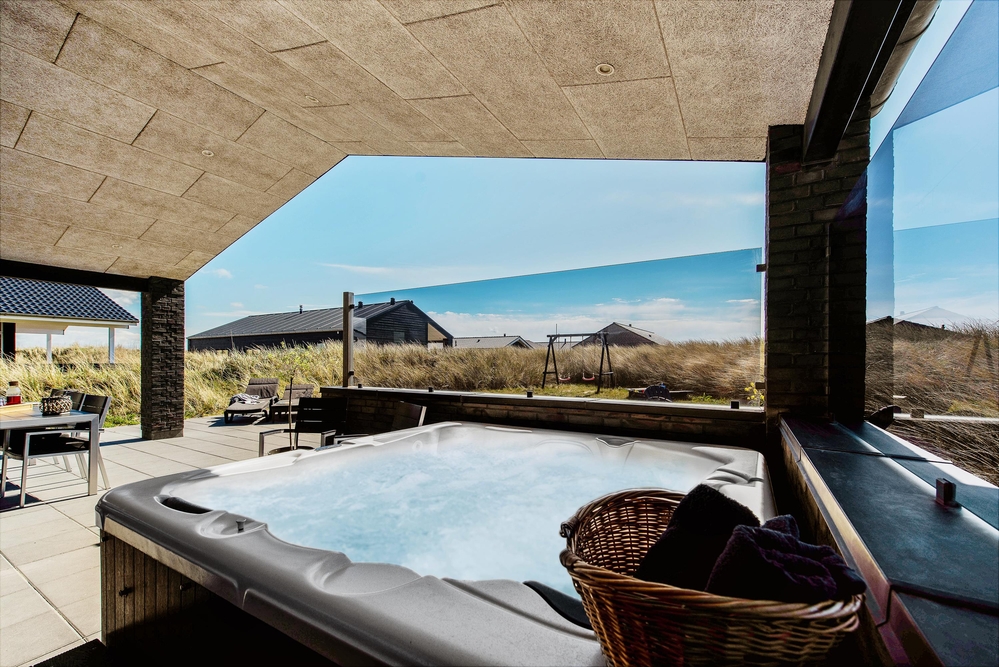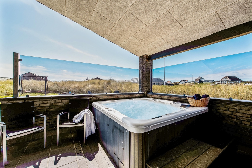 Her er et hus med fornemme faciliteter inde såvel som ude. At kunne afslutte en kold vinterdag med at tænde op i spaen på den overdækkede terrasse og siddende i det varme vand, nyde roen imens stjernerne titter frem på himlen er et absolut hit. Lige ved siden af spaen, finder I udebruseren, som kan skylle det værste sand af kroppen, efter en god tur på stranden. OBS. Udebruseren er kun åben fra april-november.