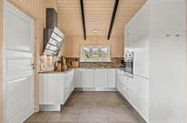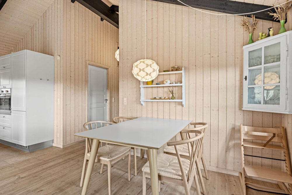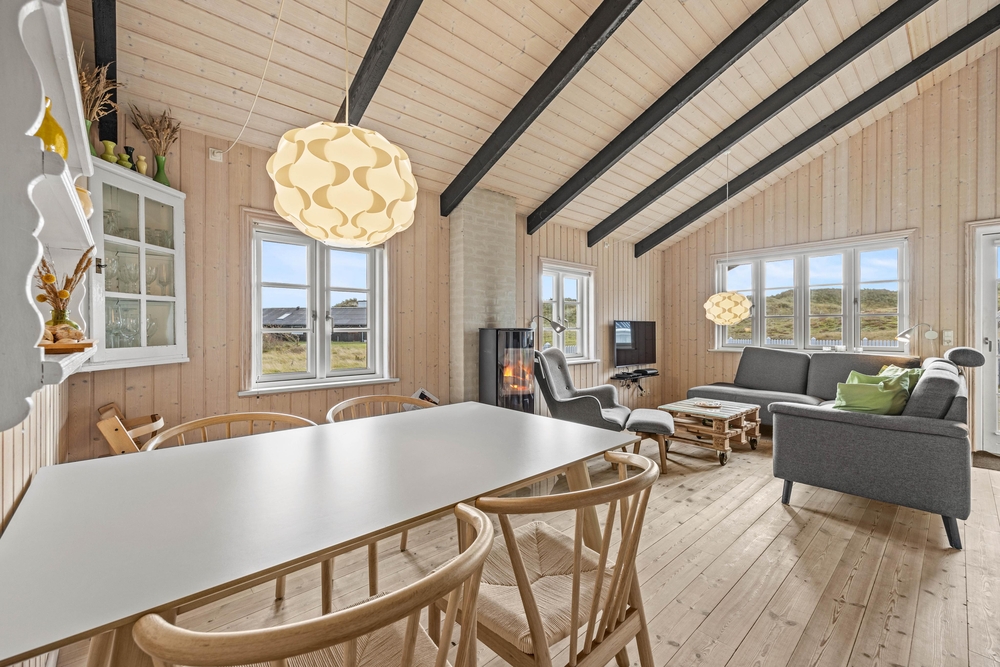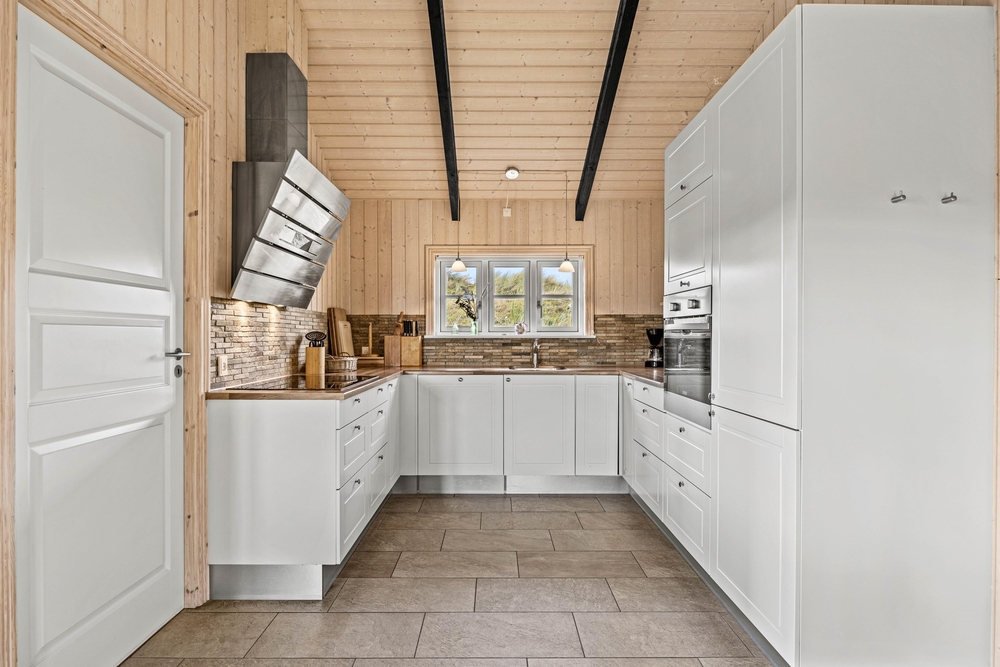Det store samlingspunkt for jer i feriehuset er uden tvivl alrummet, hvor køkkenet ligger i åben forbindelse med stue og spiseplads. I alrummet kan I være sammen om madlavning, spil og film ? og alt imens fuldender brændeovnen feriestemingen med sin knitren og varme.