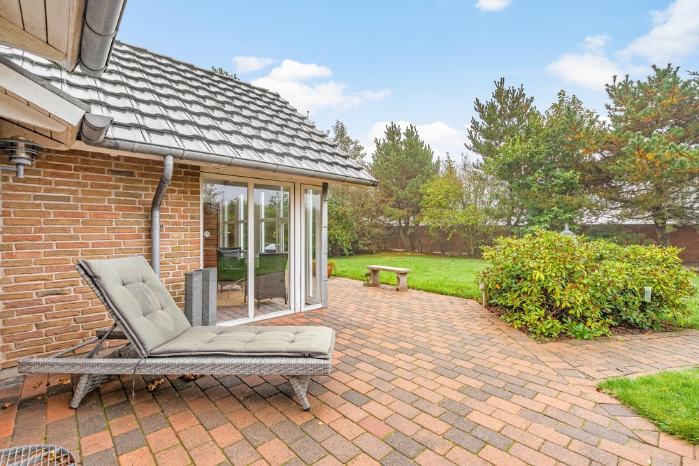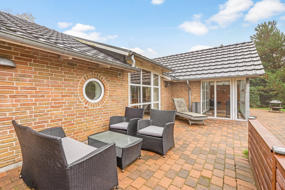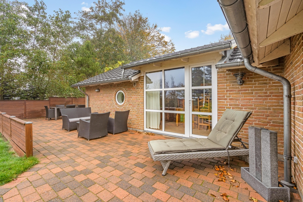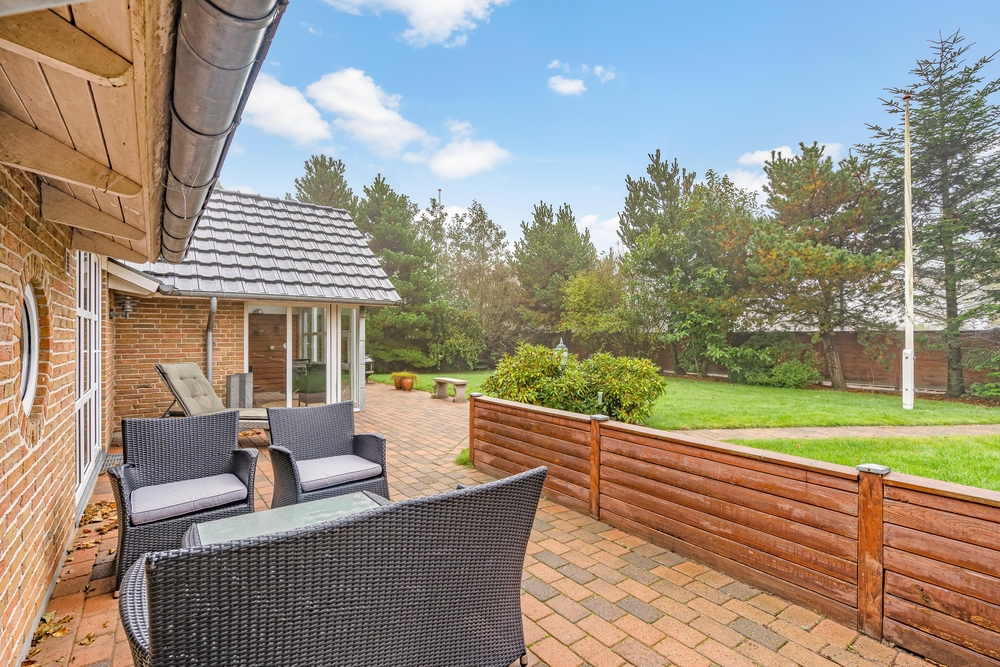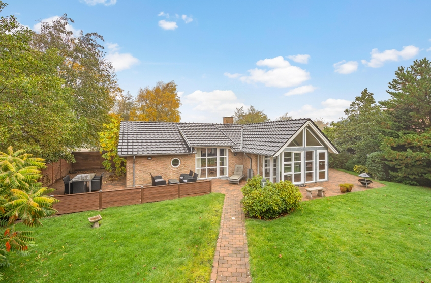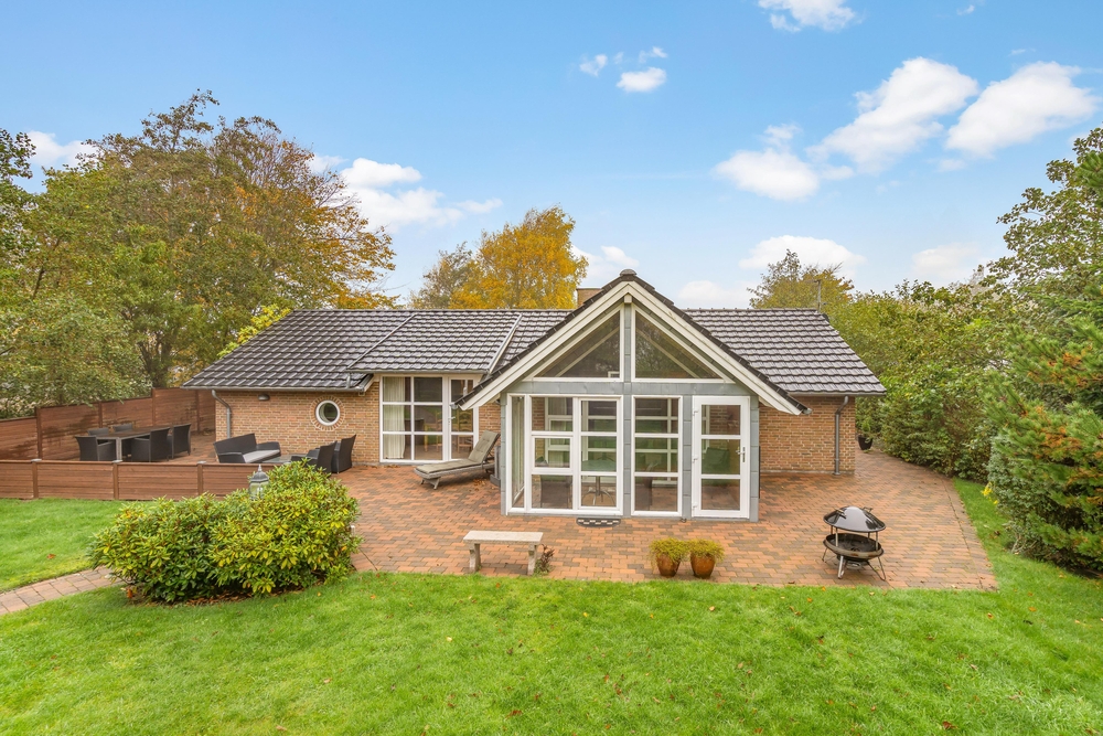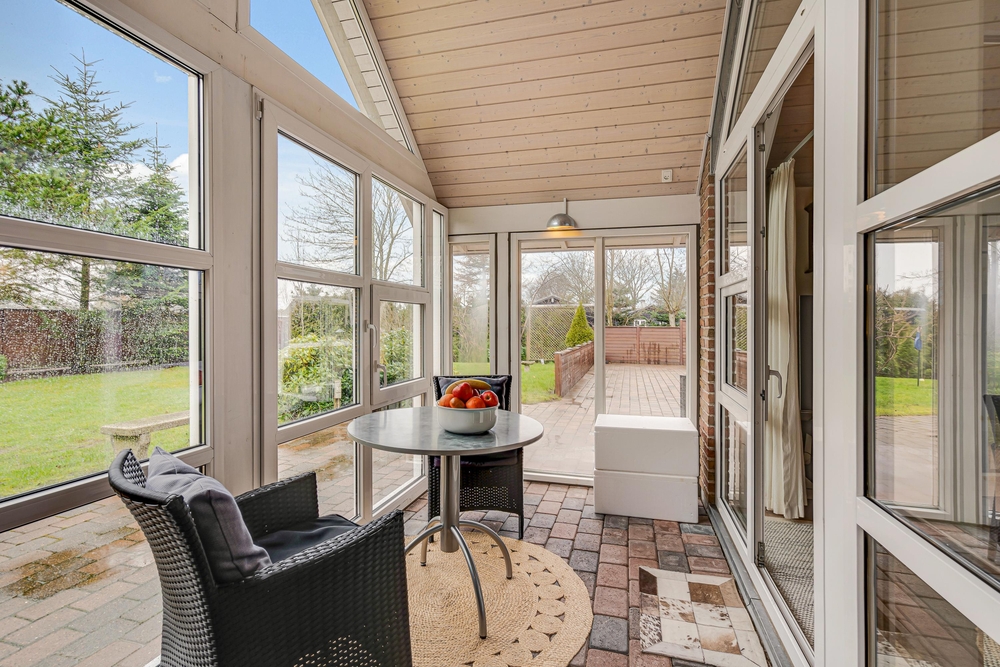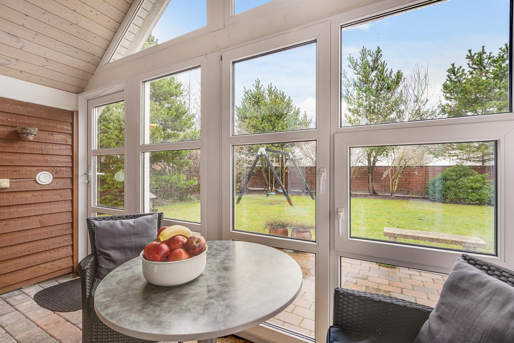 Skulle det ske, at det regner, kan I nyde sommeren fra feriehusets udestue.
